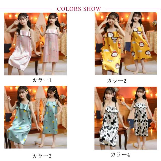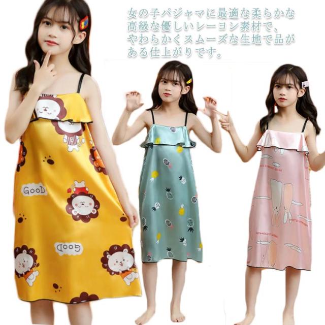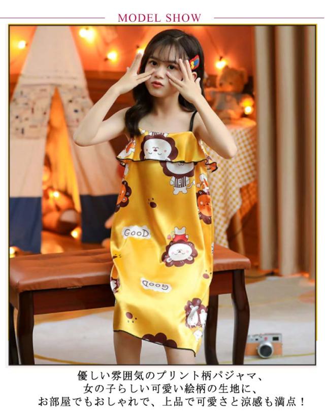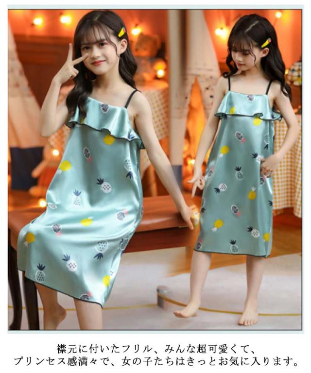 女の子 150 キッズ キャミソール 110 フリル ワンピース ルームウエア 子供服 部屋着 寝間着 ノースリーブ ネグリジェ サテン 薄手 かわいい ゆったり 100 ナイトドレス 120 130 140 パジャマ