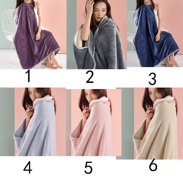 ひざ掛け ブランケット 膝掛け 毛布 ボタン付き 羽織 掛ける 2way ボア マイクロファイバー 厚手 無地 大判 100*70 もこもこ オフィス アウトドア 防寒対策 裏ボア ぽかぽか ふわふわ 冬 寒さ対策