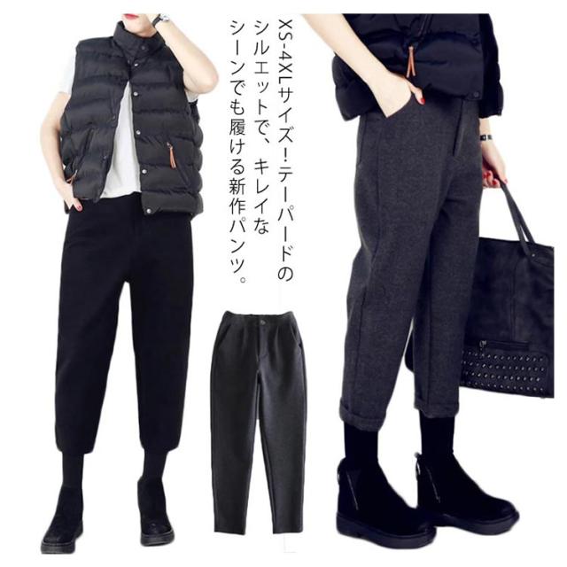 XS-4XLサイズ!クロップドパンツ サルエルパンツ テーパードパンツ レディース メルトン パンツ 9分丈 サルエル ボトムス ゆるパンツ 体型カバー テーパード 起毛感 秋冬 冬 おしゃれ 大きサイズ