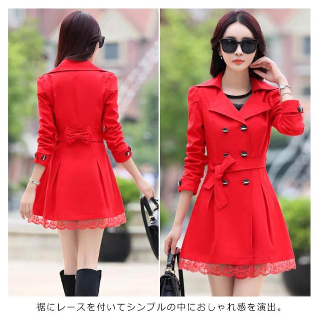 | 春の装いにマストな大人トレンチコートの登場。 スリムフィットな美しいシルエットを仕上げる。 裾にレースを付いてシンプルの中におしゃれ感を演出。 女性らしさをUPするファッションアイテムの一つ。 テーラード仕様のフロントデザインも"こなれ感"たっぷり。 大人のゆるさとガーリー感を兼ね備えた秋のイチオシアイテム。 サイズが普段によって小さくて、ワンサイズ上をおすすめ。 | |
