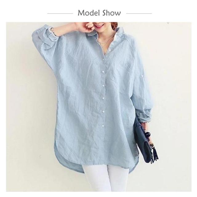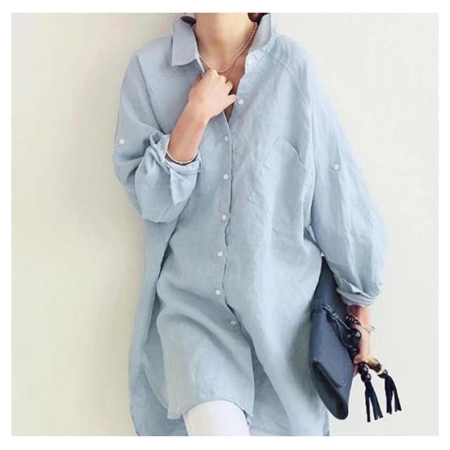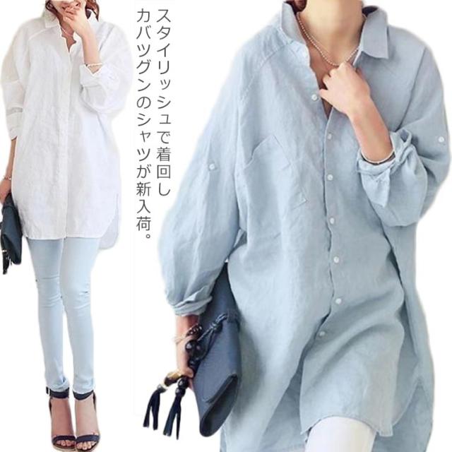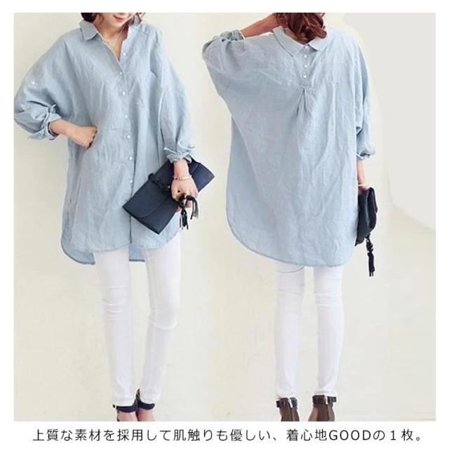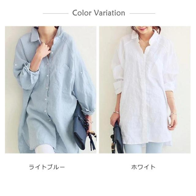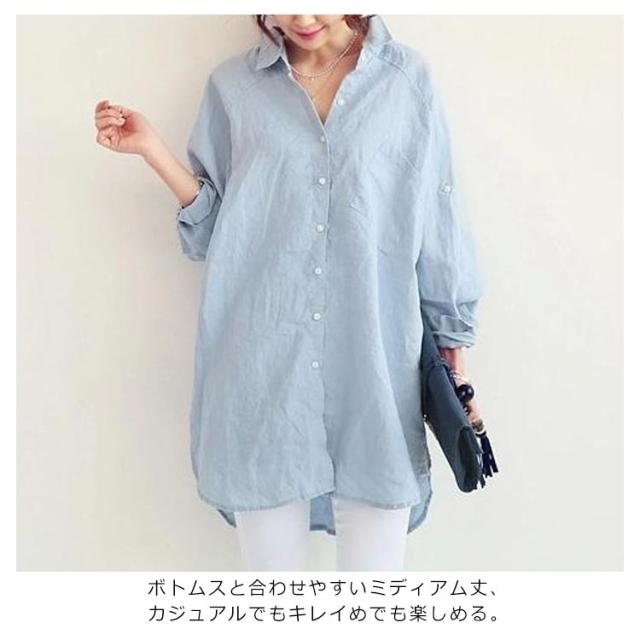 ブラウス シャツ 綿麻シャツ レディース 長袖 無地 とろみシャツ ビッグシルエット リネンシャツ チュニック ナチュラル 森ガール系 ロールアップ袖 大きいサイズ