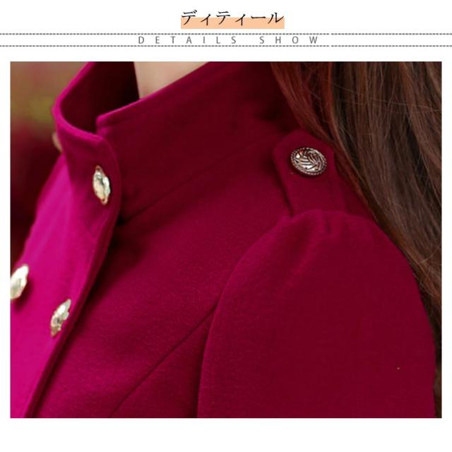 全4色×5サイズ!立ち襟コート コート ピーコート pコート スタンドカラー ダブルボタン トレンチ アウター メルトン レディース Aライン 無地 通勤 秋冬