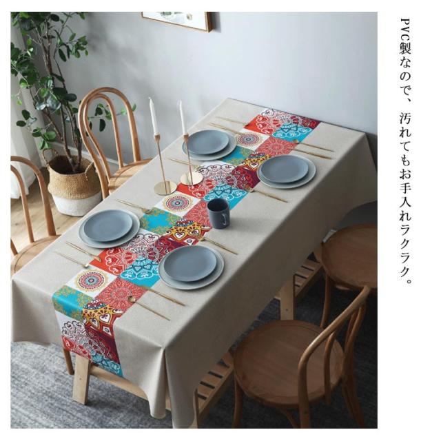 4サイズ×11色 テーブルクロス エスニック柄 北欧風 テーブルカバー 防水 長方形 食卓カバー センターテーブルカバー テーブルマット 傷防止 汚れ防止 ビニール