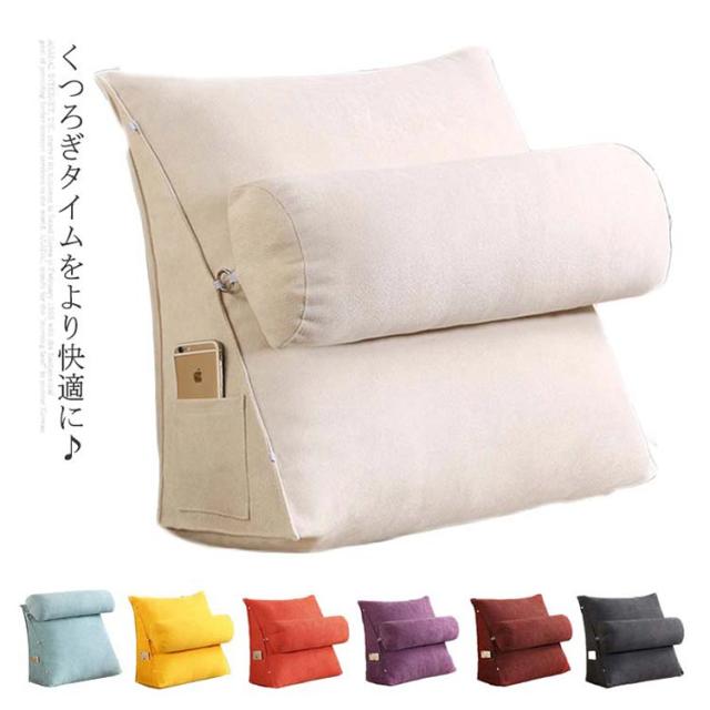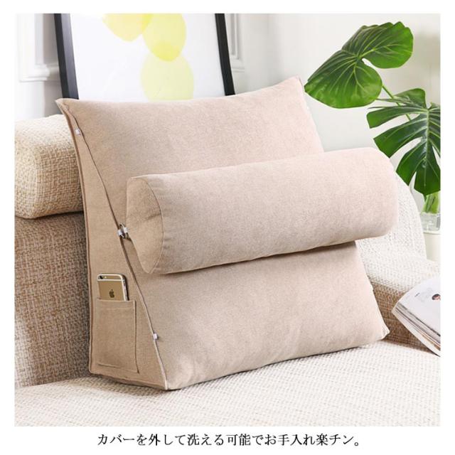 三角クッション 背もたれ クッション ベッドクッション ソファークッション 三角 枕 座布団 足枕 座椅子 腰枕 腰クッション ポケット付き 北欧 洗える 洗濯可