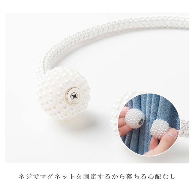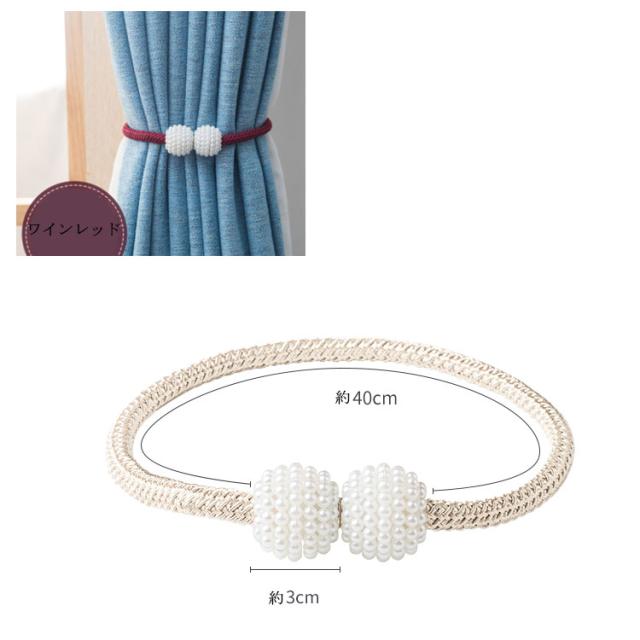 | シンプルながら高級感溢れるカーテンタッセル。 工具不要!壁に穴を開ける必要なし。カーテンに巻いてマグネットで留めるだけ! カーテンを締めている時はカーテンの隅っこに留めておけばOK◎ パール調のデザインがエレガントで優雅な雰囲気に! | |