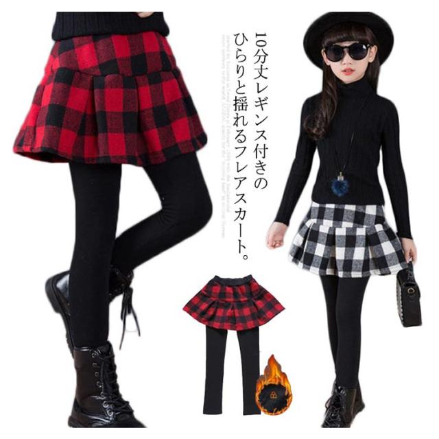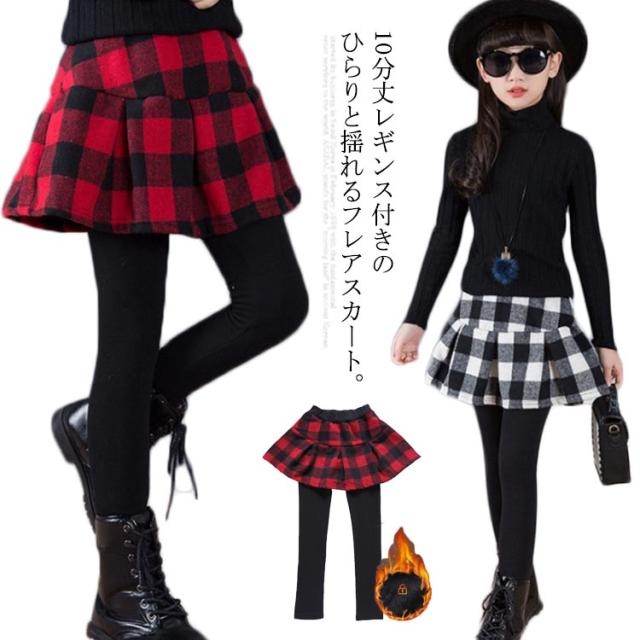 スカッツ フレアスカート レギンス付き 子供服 スカート 裏起毛 チェック柄 スキニー 厚手 ボトムス 女の子 秋冬物 レギンス キッズ服 可愛い