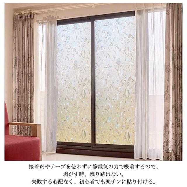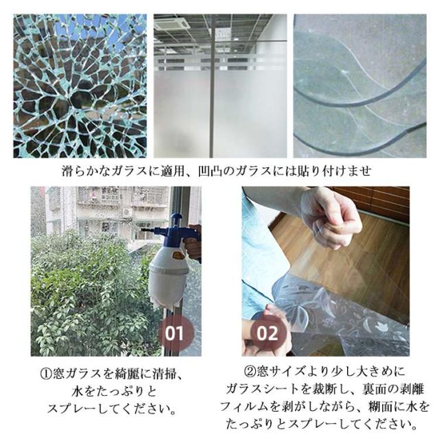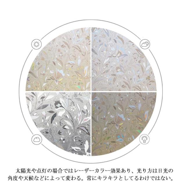 | 光に当たってキラキラお洒落! 水だけで貼れる窓目隠しシート。 接着剤やテープを使わずに静電気の力で吸着するので、剥がす時、残り跡はない。 失敗する心配なく、初心者でも楽チンに貼り付ける。 明るさを保ちながら、外からお部屋の中が見えず、プライバシー対策に最適! 高品質のPVC原材料なので、耐久性に優れ、変色が起こりにくく、長年使用できます。 防水性に優れたので、浴室や洗面所など高い湿気エリアでも使える。 | |