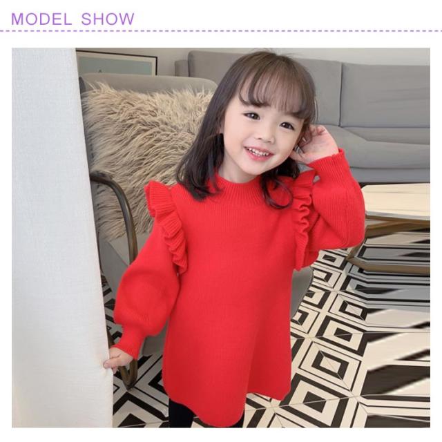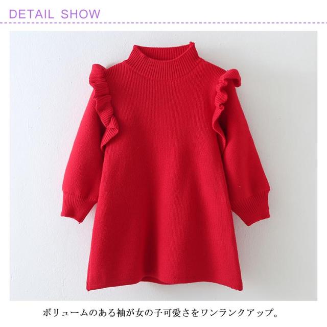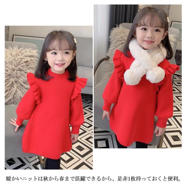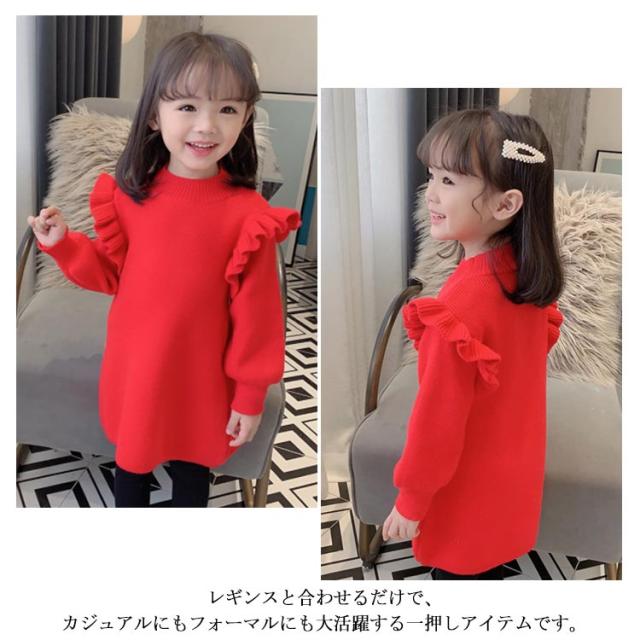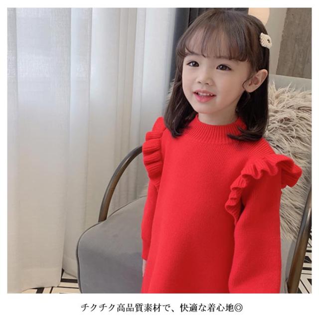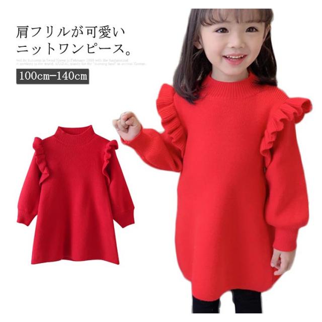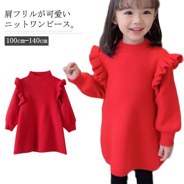 肩フリルが可愛い ニットワンピース 女の子 子供服 長袖 ワンピース ニット キッズ ワンピース 暖かい 秋 冬 春 Aライン バルーンスリーブ パーティー フォーマル 披露宴 カジュアル 100 110 120 130 140