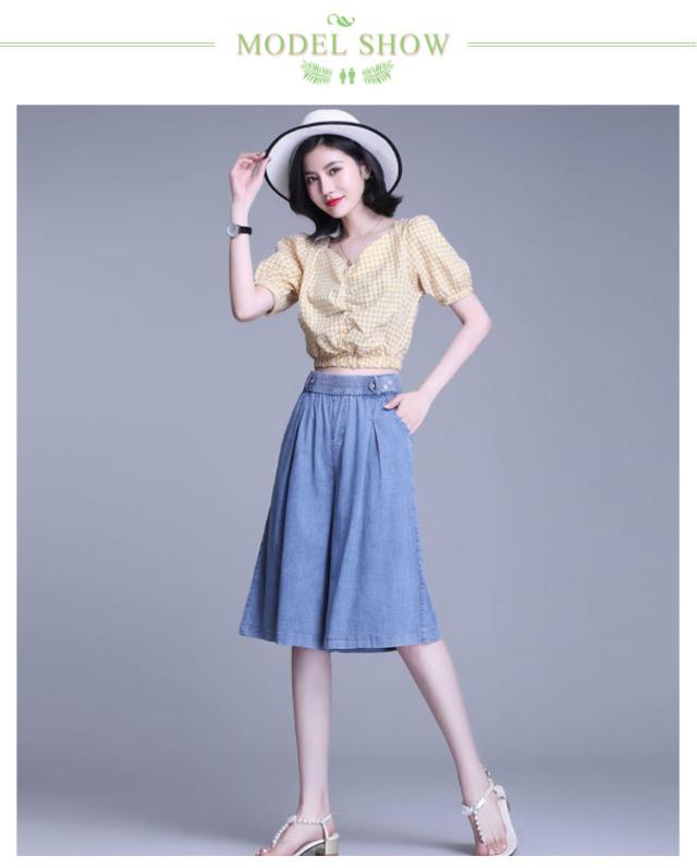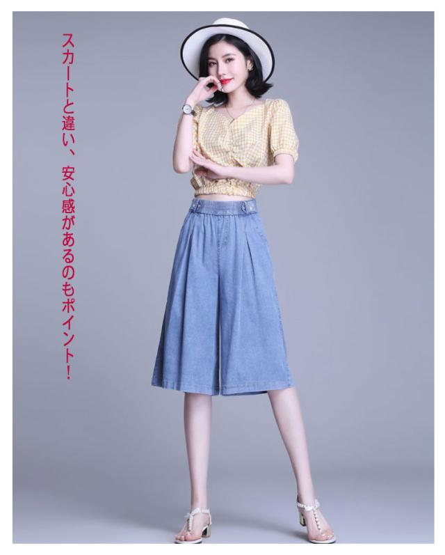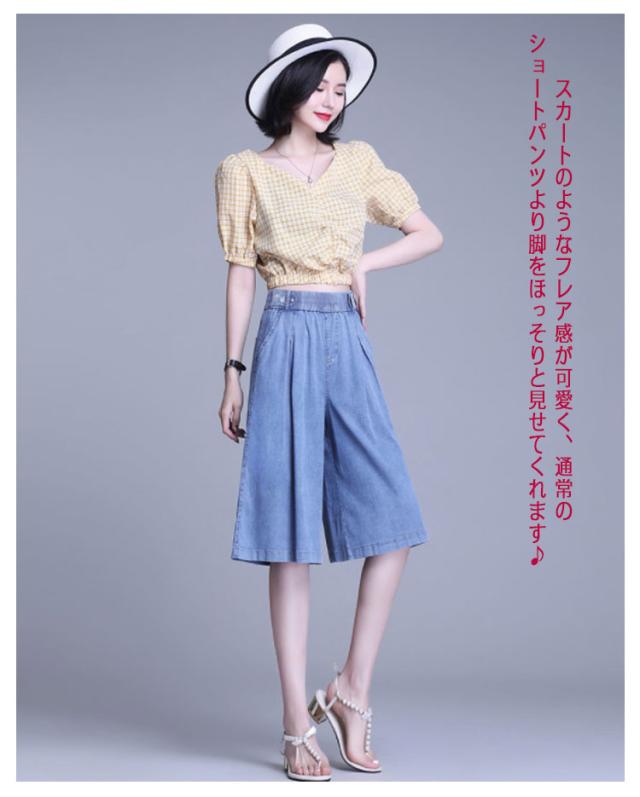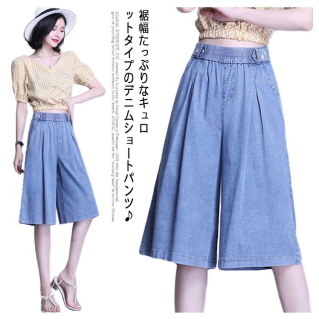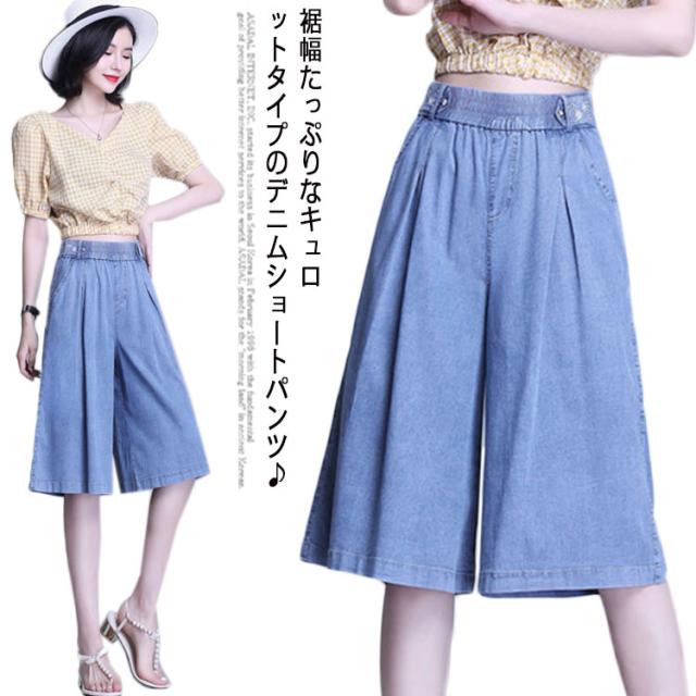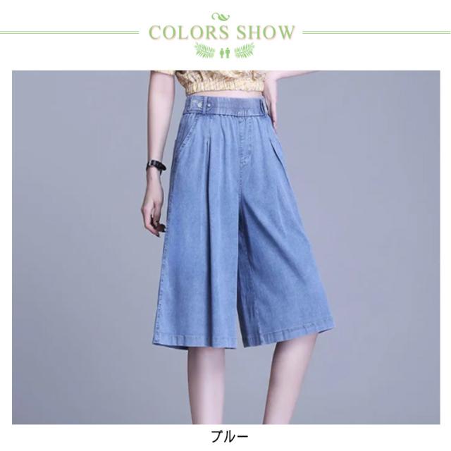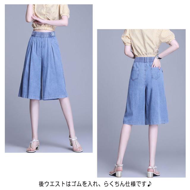 【送料無料】ガウチョパンツ デニム キュロット 膝下 40代 30代 レディース ハーフパンツ スカーチョ タック入り 50代 通勤 普段着 夏 薄手 デニム ショートパンツ カジュアル 20代 大きいサイズ