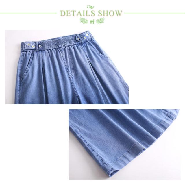 | 裾幅たっぷりなキュロットタイプのデニムショートパンツ♪ スカートのようなフレア感が可愛く、通常のショートパンツより脚をほっそりと見せてくれます♪ スカートと違い、安心感があるのもポイント! 後ウエストはゴムを入れ、らくちん仕様です♪ | |