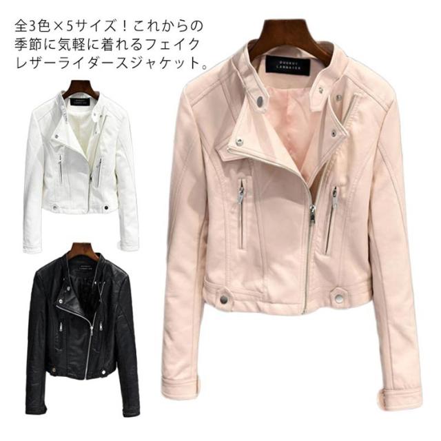全3色×5サイズ!PU合皮 ジャケット レディース ライダースジャケット フェイクレザー 合皮ジャケット ショート丈 ライダース 春 秋
