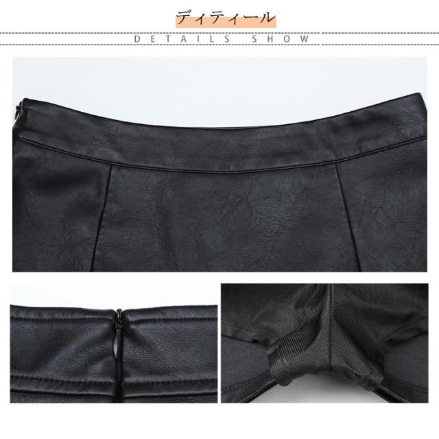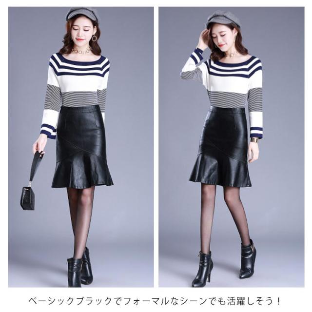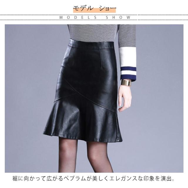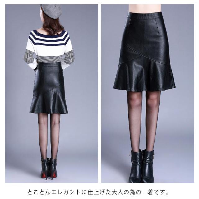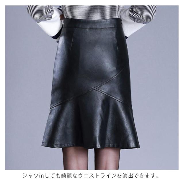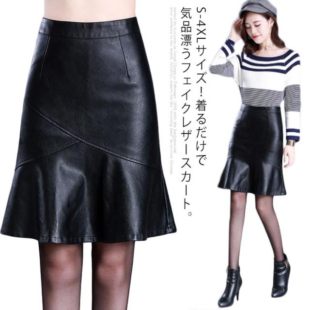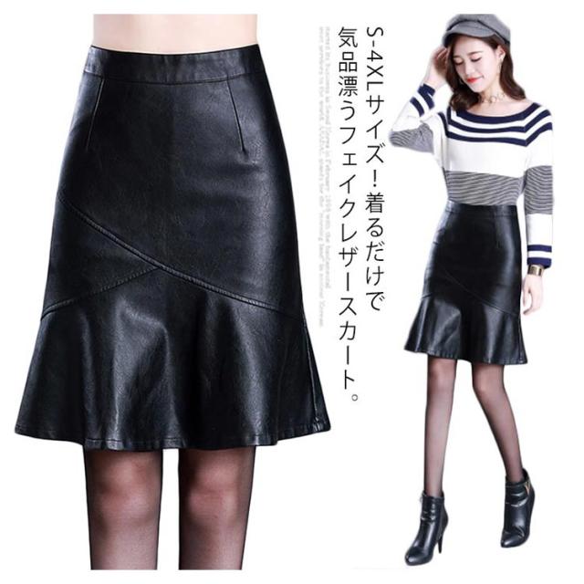 S-4XLサイズ!フェイクレザースカート レザースカート PU 合皮 スカート 膝丈 ハイウエスト タイトスカート aライン 裏地付き フリル 通勤 エレガント 秋冬 大きサイズ