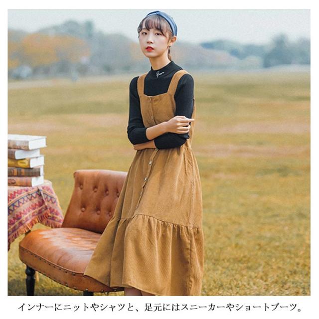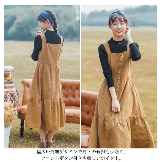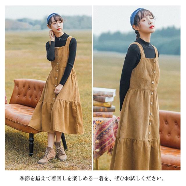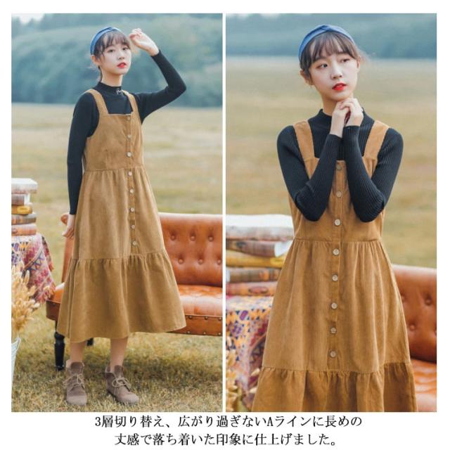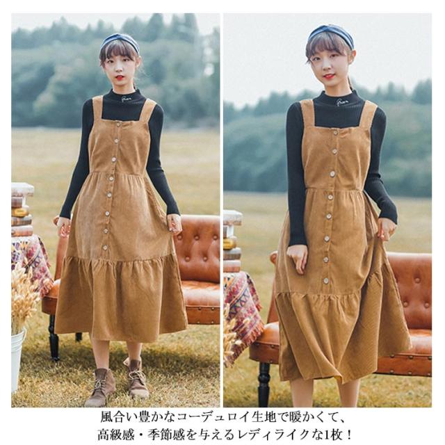 コーデュロイワンピース コーデュロイ サロペットワンピース ジャンパースカート ロング サロペット ワンピース キャミソールワンピース 秋冬 トレロ 可愛い