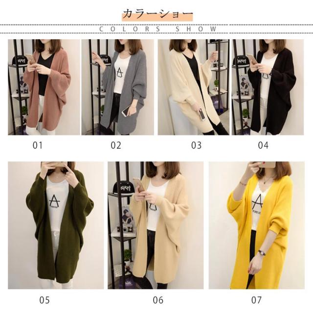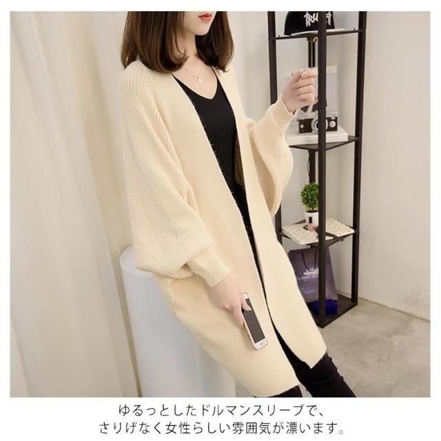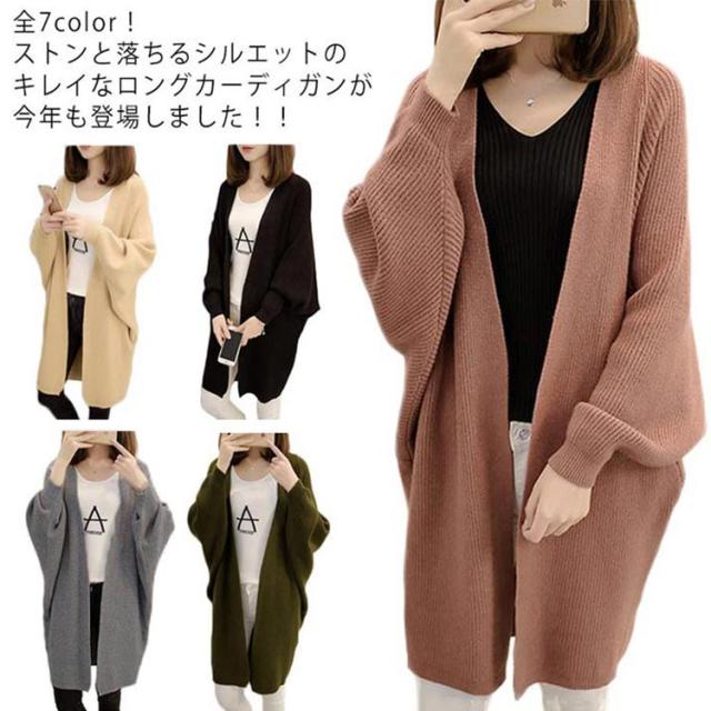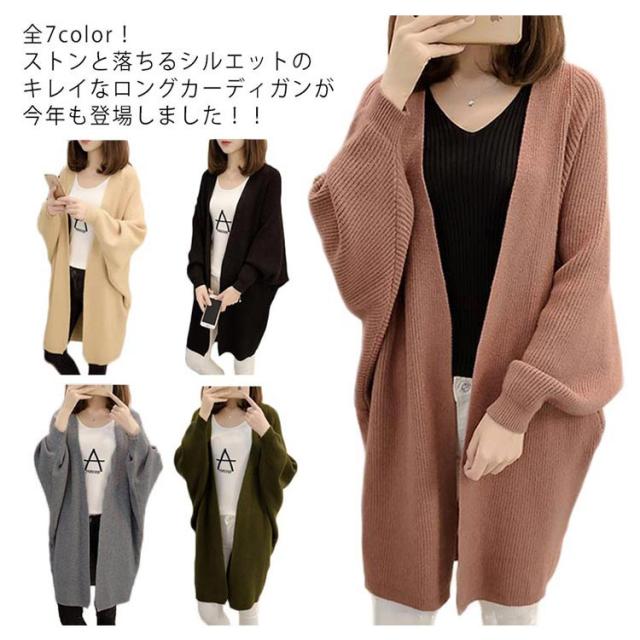 全7color!ロングカーディガン レディース 厚手 ニット カーディガン トッパーカーディガン ロングカーデ トップス ロング 秋 アウター ゆるニット ドルマンスリーブ きれいめ