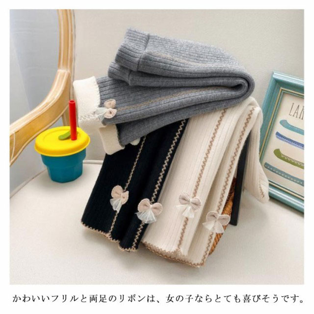 子供服 女の子 ロングパンツ 裏起毛 リボン レギンス ベビー キッズ 暖かい 秋冬 厚手 ボトムス 保温 あったか 防寒 子ども おしゃれ 可愛い ガールズ 女児 通学 通園 80 90 100 110 120 130 送料無料