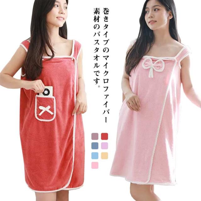 ポケット付き バスタオル 大判 可愛い タオル ワンピース 着れるバスタオル バスローブ レディース 速乾 便利 マイクロファイバー お風呂 プール ジム 落ちない