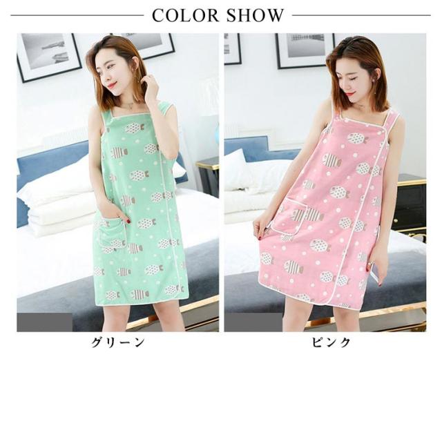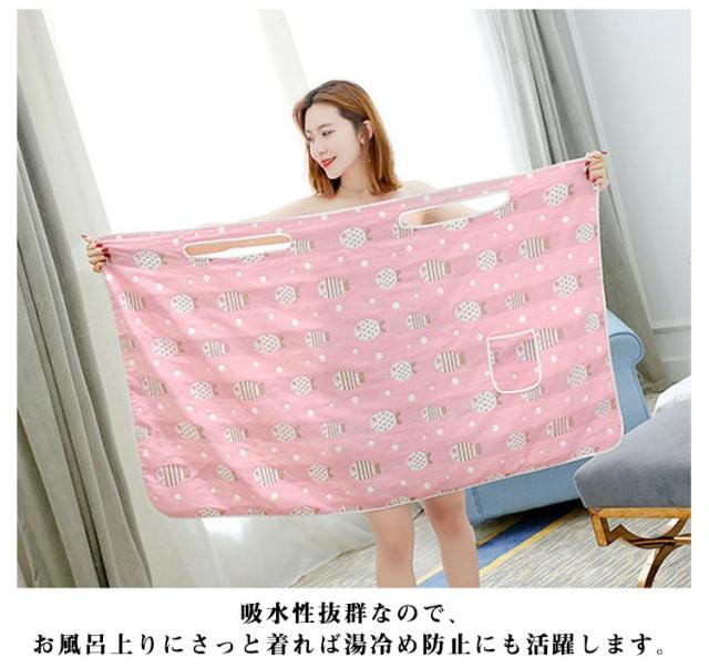 | 巻きタイプ、吸水性優れるのガーゼ綿100%のバスタオルです。 着た時にふわふわ柔らかな気持ちの良い優しい肌触りが楽しめます。 吸水性抜群なので、お風呂上りにさっと着れば湯冷め防止にも活躍します。 便利なポケット付き、オールシーズン着用できるラップタオル! 海水浴やプールサイドなど水着の上にも着用OK。 | |