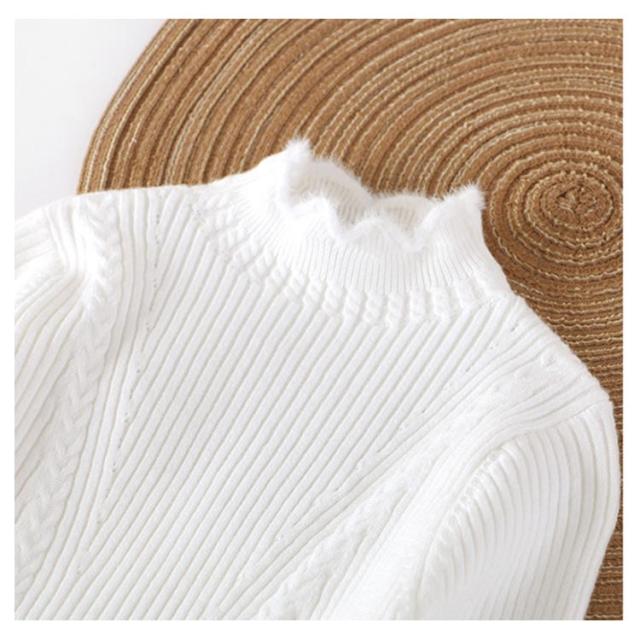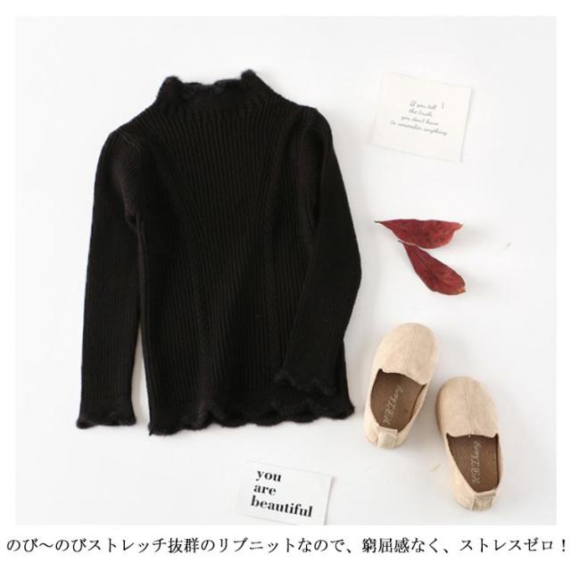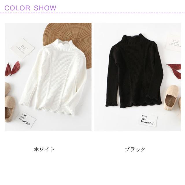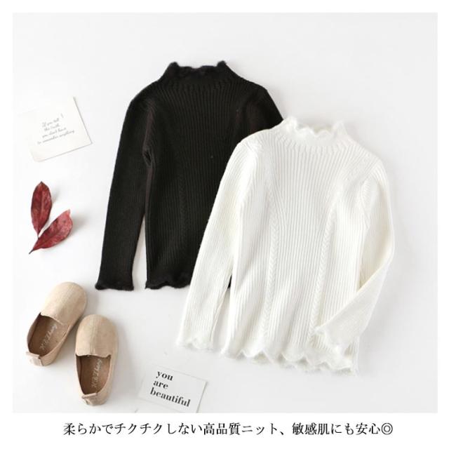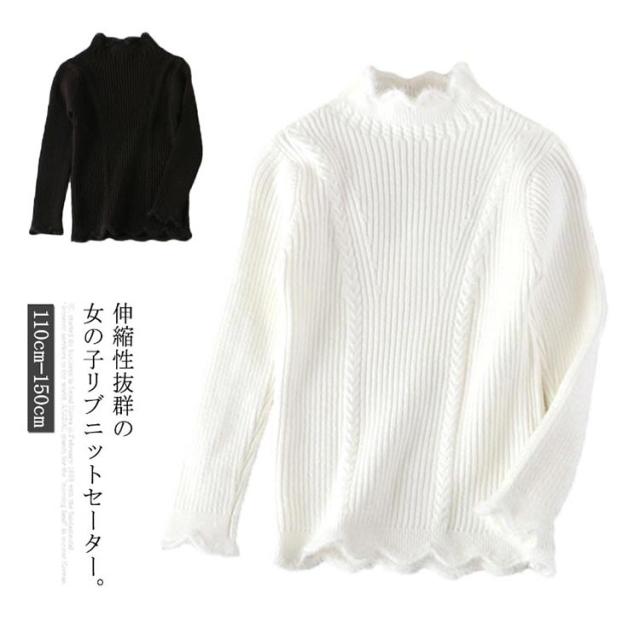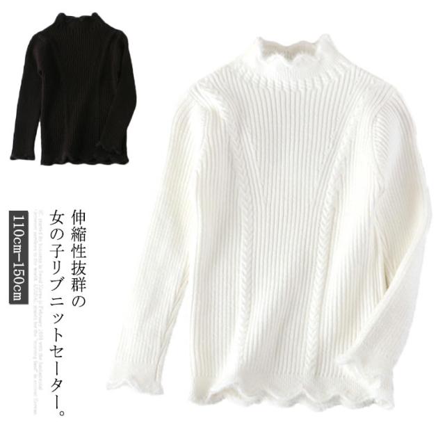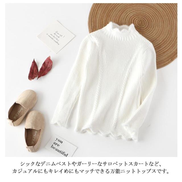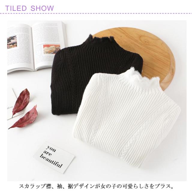 子供服 ニットトップス ニットセーター 女の子 スカラップ衿 ハイネック 長袖 ニット リブニット ケーブル編み 乙女 ガーリー キッズ 子ども ニット トップス 無地 インナー 110cm 120cm 130cm 140cm 150cm