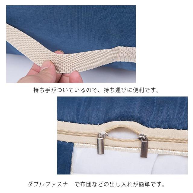 | 透明窓付き布団収納袋のご紹介です。 汚れから布団を守ります。 ダブルファスナー式ですので中身の出し入れが簡単です。 押入れ、クローゼットへの出し入れに便利な持ち手付きです。 使わないときはコンパクトに折りたためるので、わずかな隙間に収納可能。 | |