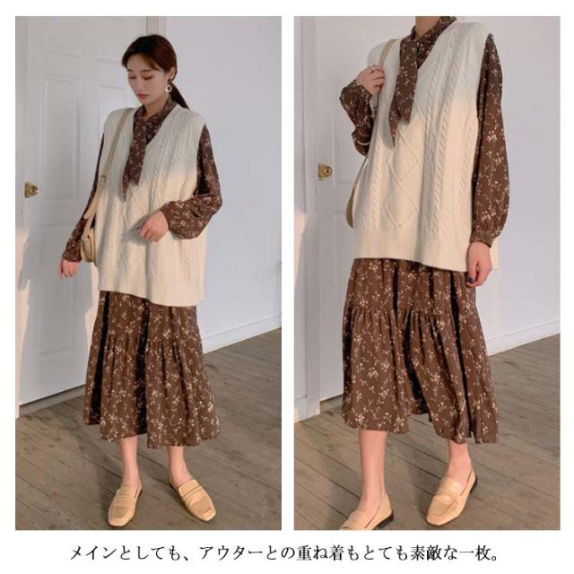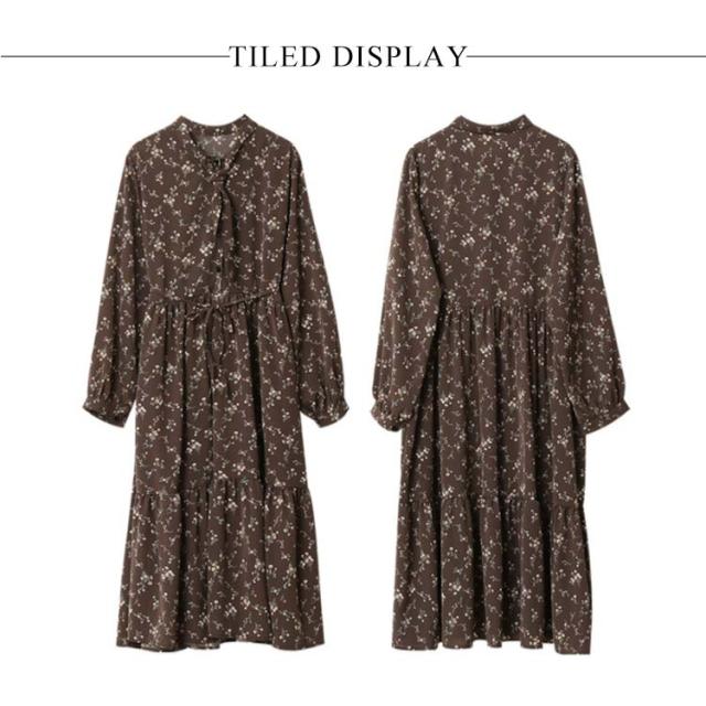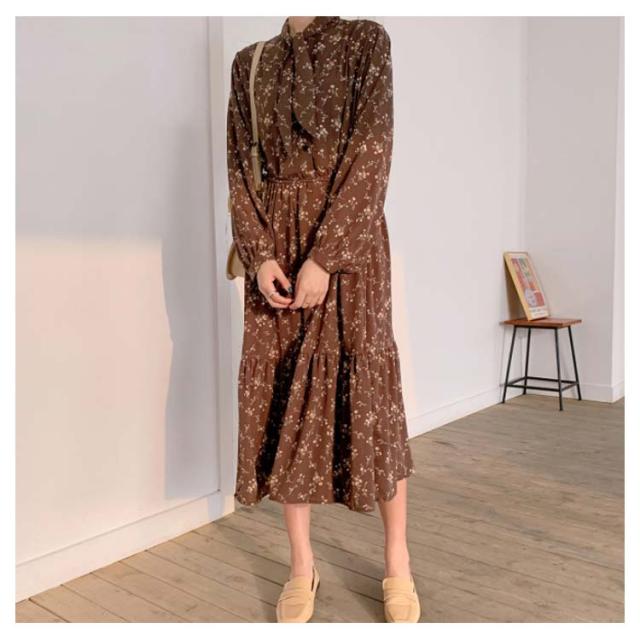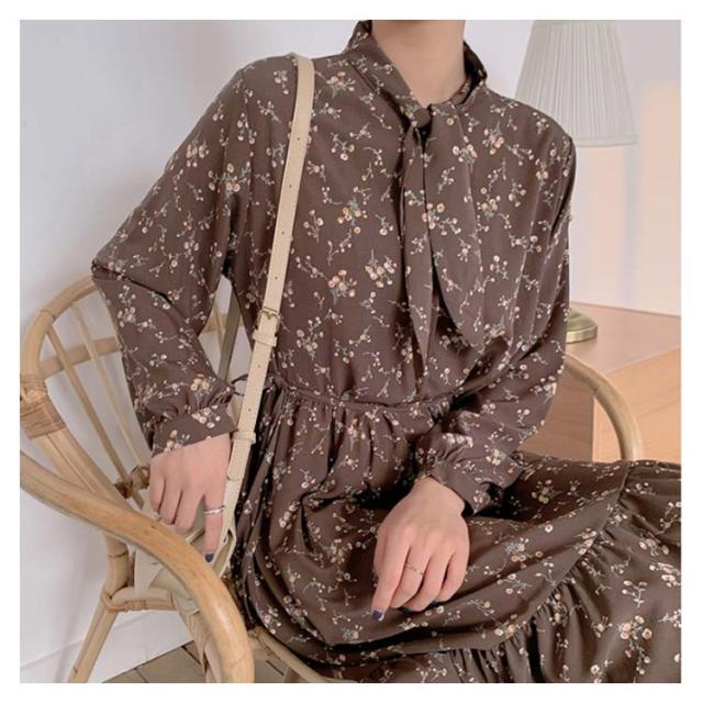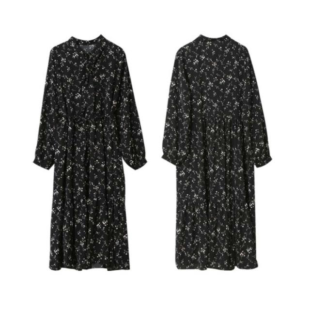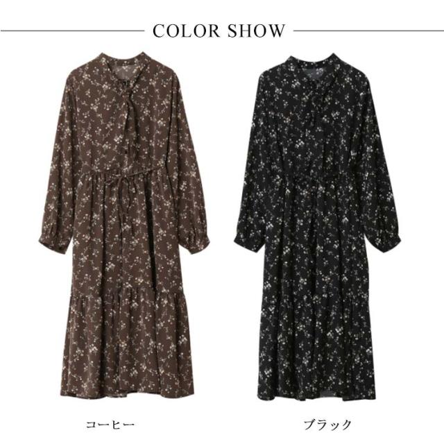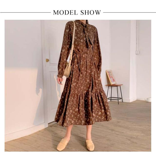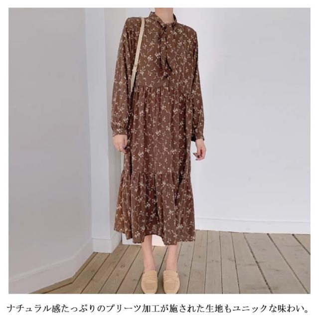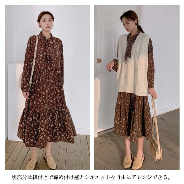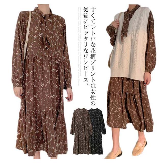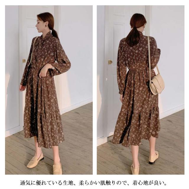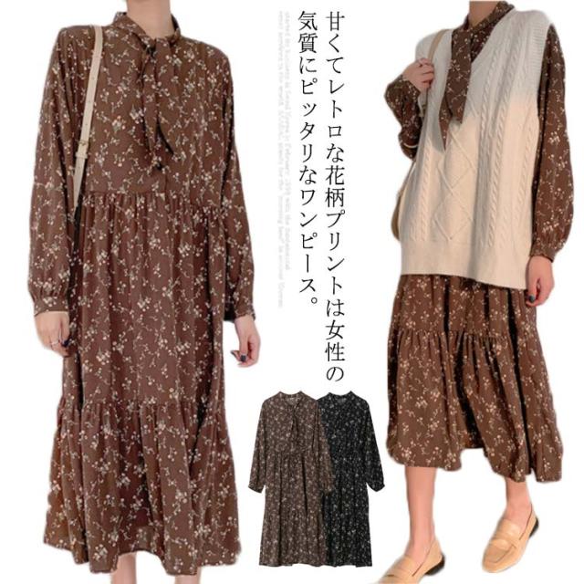 ワンピース ロングワンピース 花柄 ミモレ丈 レディース 長袖 Aライン 着痩せ 秋冬物 ロング丈 キレイめ 大人可愛い お洒落 ブルオーバー