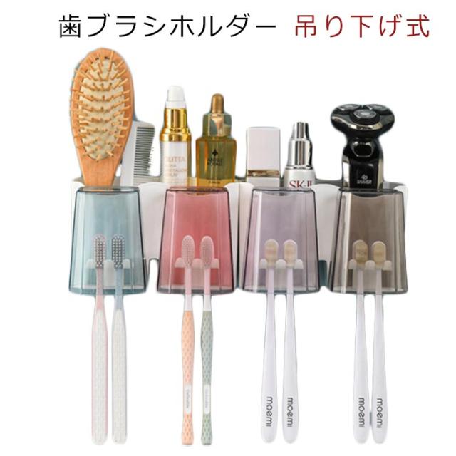 歯ブラシホルダー 吊り下げ式 壁掛け式 歯ブラシスタンド コップスタンド 歯ブラシたて はぶらしたて 洗面所 収納 壁掛け 電動歯ブラシ 歯磨き粉 カップ スタンド 水垢防止 防塵衛生 おしゃれ 日用品雑貨