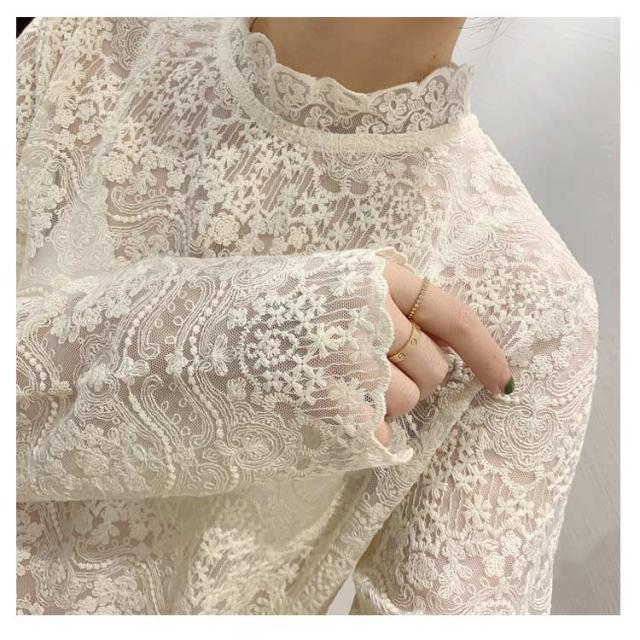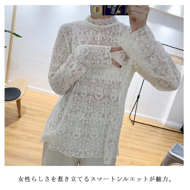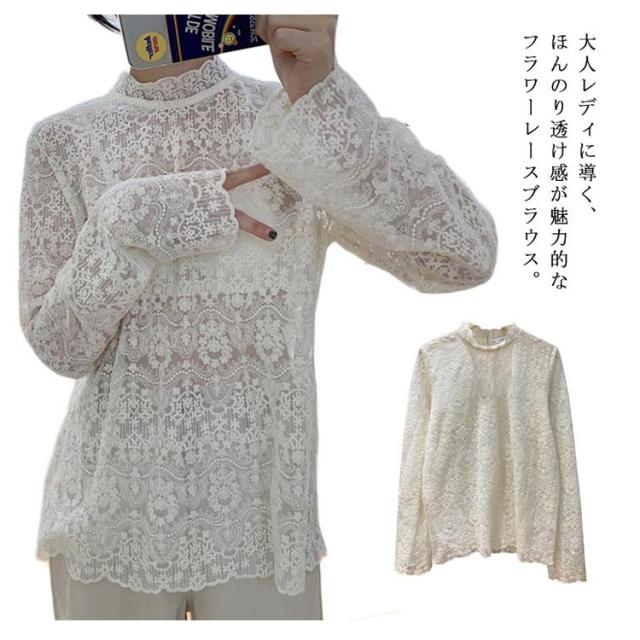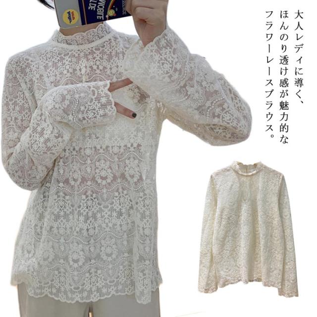 シースルーブラウス 花柄刺繍 ブラウス トップス ハイネックブラウス 刺繍ブラウス 長袖 シースルー 透け感 おしゃれ フラワー インナー
