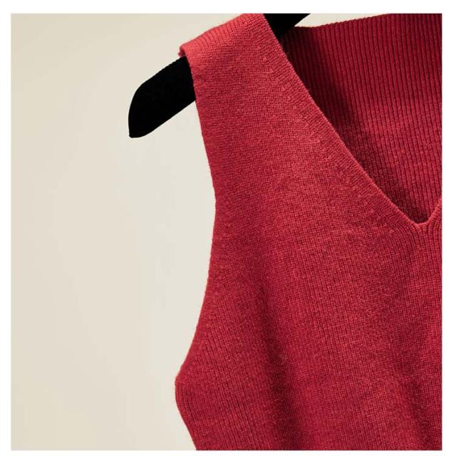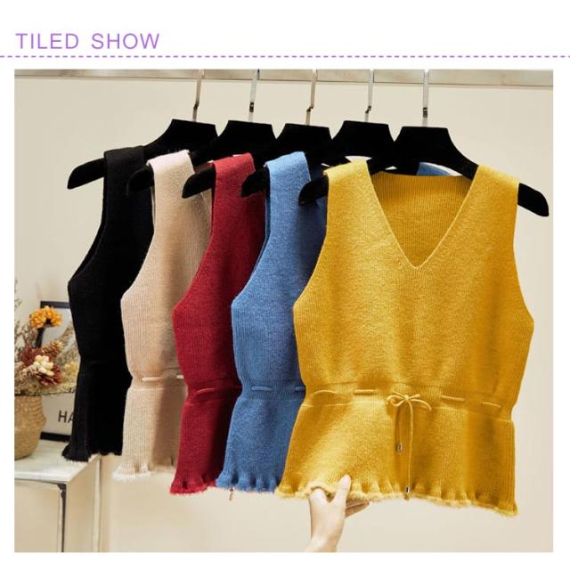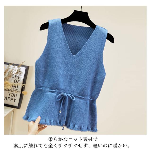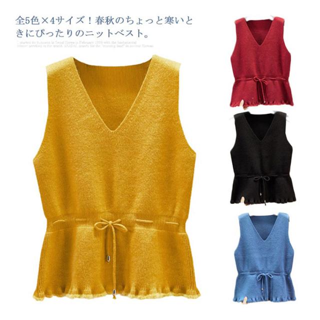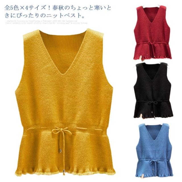 全5色×4サイズ!裾フリル ニットベスト ノースリーブニット レディース ニットソー ニットトップス ノースリーブ 無地ニット ショート丈 プルオーバー カジュアル 春 秋
