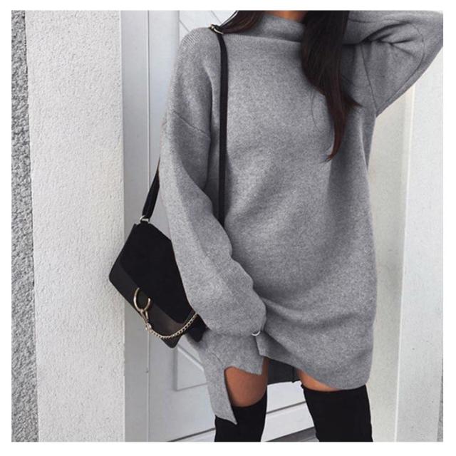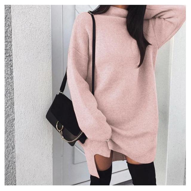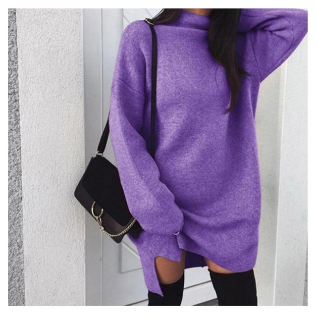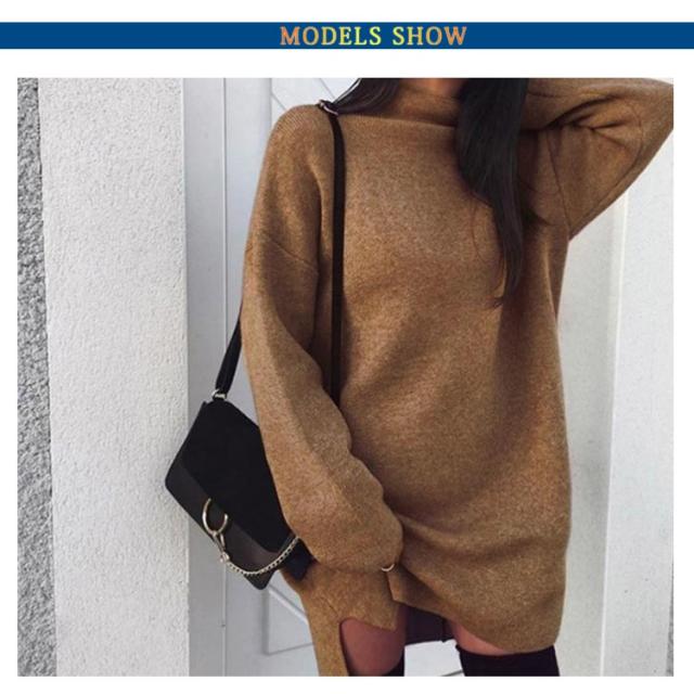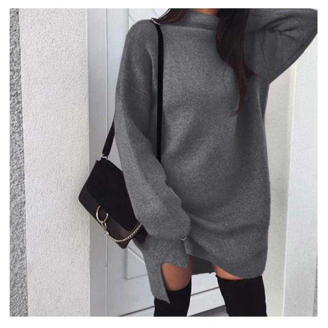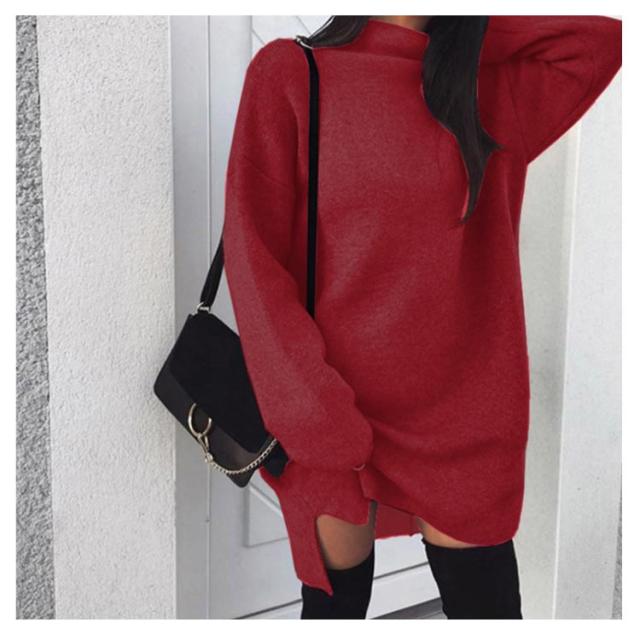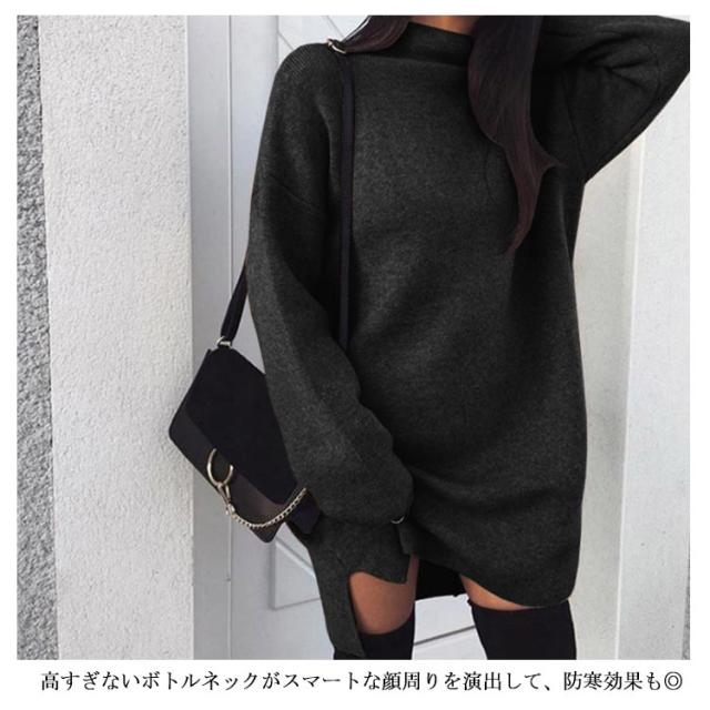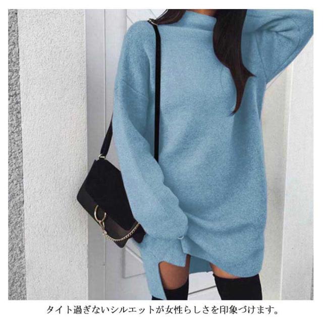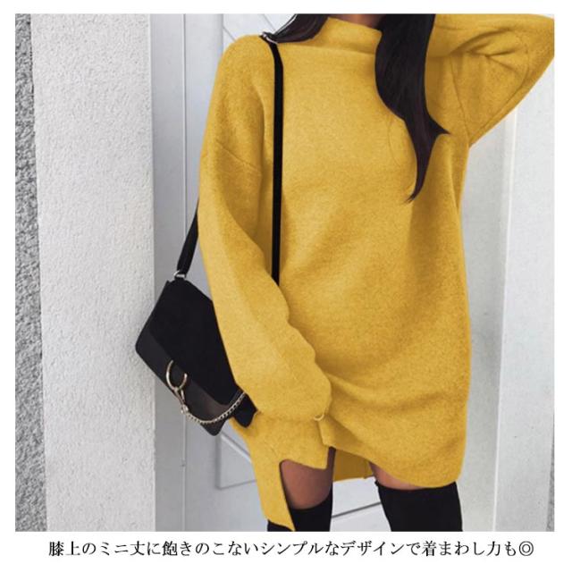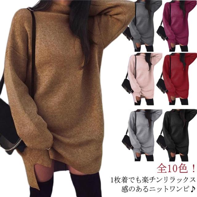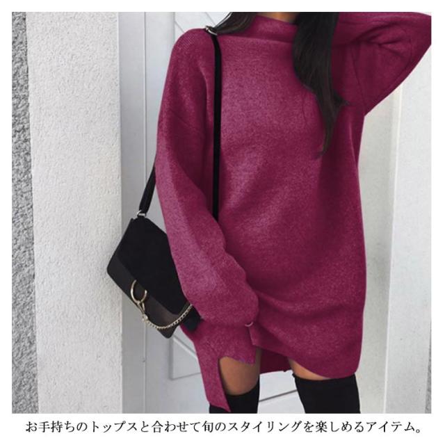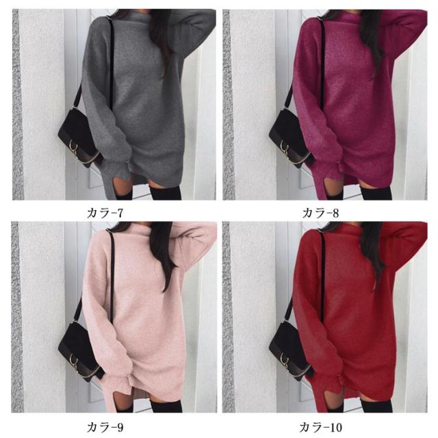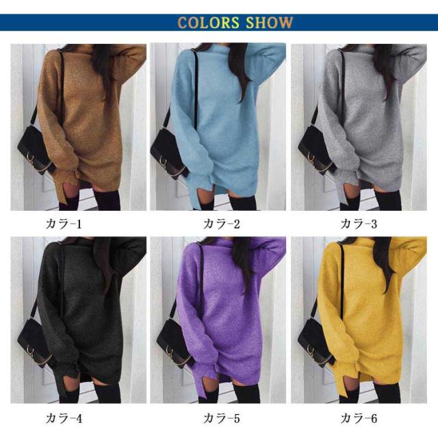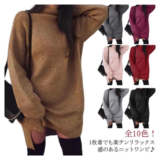 ワンピース ニットワンピ ハイネック スリット ショート丈 レディース ブルオーバー ゆったり 大きいサイズ 体型カバー お洒落 カラバリ