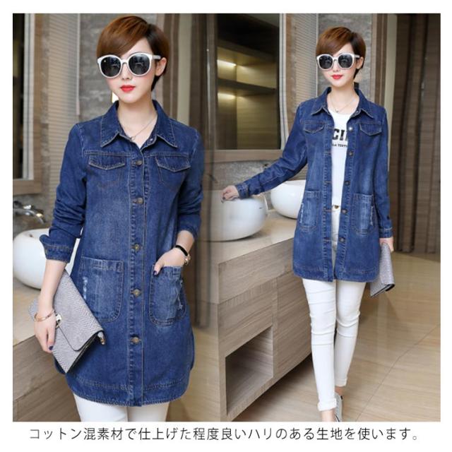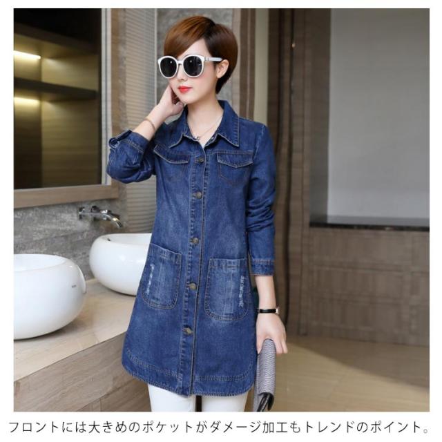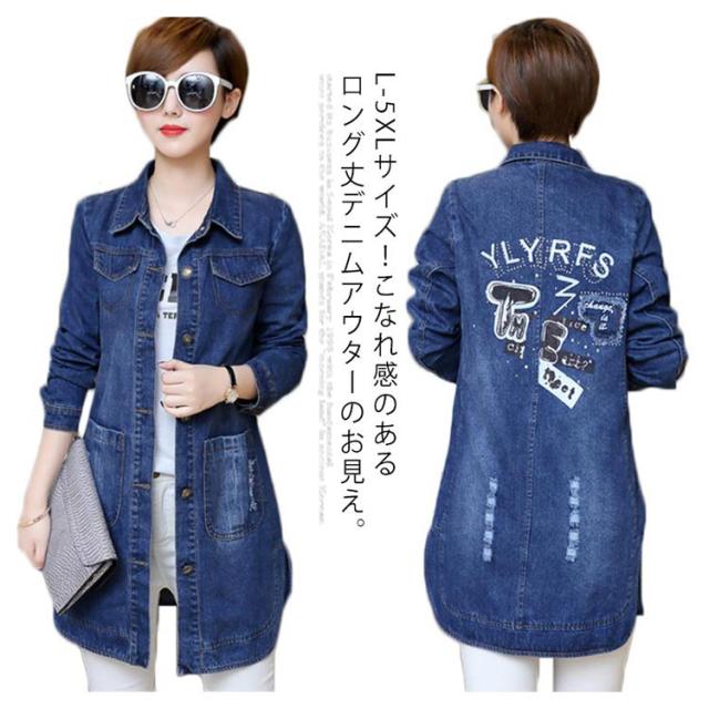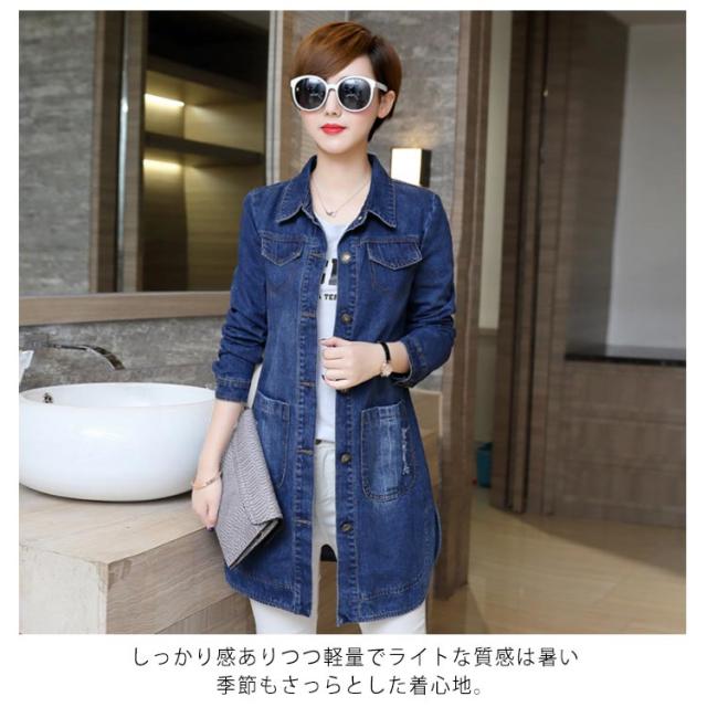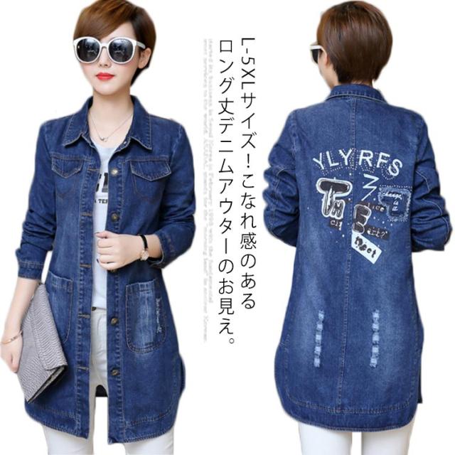 L-5XLサイズ!デニムアウター レディース デニムコート ミディアム Gジャン デニム 羽織り トップス 大きサイズ ポケット付き 春 秋 送料無料
