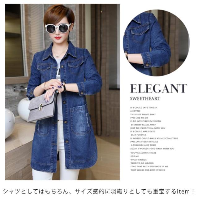 | L-5XLサイズ!こなれ感のあるロング丈デニムアウターのお見え。 バックにさりげない英字柄がアクセントに コットン混素材で仕上げた程度良いハリのある生地を使います。 フロントには大きめのポケットがダメージ加工もトレンドのポイント。 しっかり感ありつつ軽量でライトな質感は暑い季節もさっらとした着心地。 合わせるボトムを選ばず、幅広いスタイリングで役立つ今年らしいアイテムです。 シャツとしてはもちろん、サイズ感的に羽織りとしても重宝するitem! | |