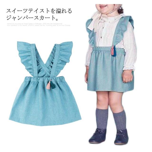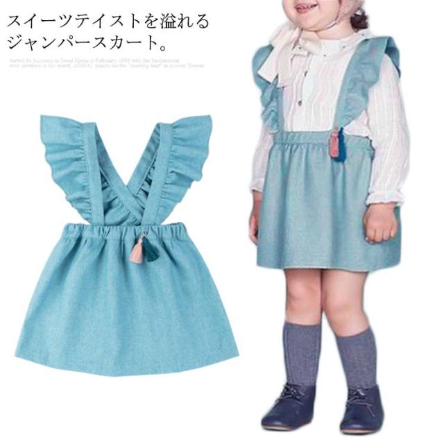 ジャンパースカート 子供服 女の子 ウール ワンピース ノースリーブ フリル サロペットスカート ウェストゴム 送料無料 お姫様 スカート アンティーク 秋 冬 100cm 110cm 120cm 130cm 140cm 通学 通園