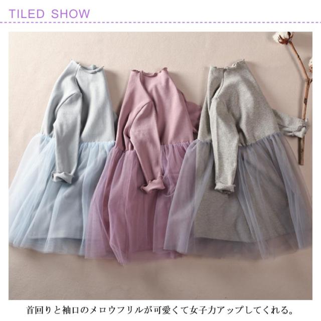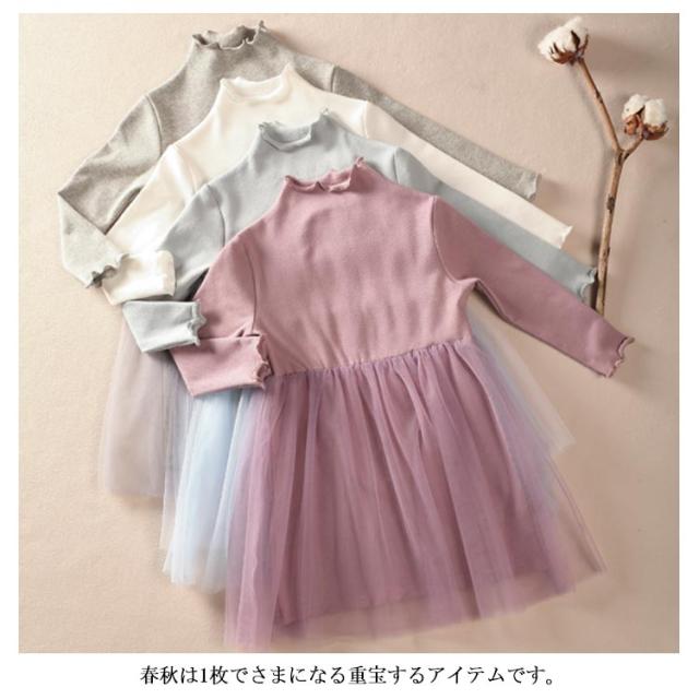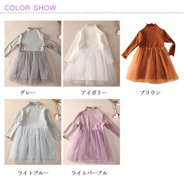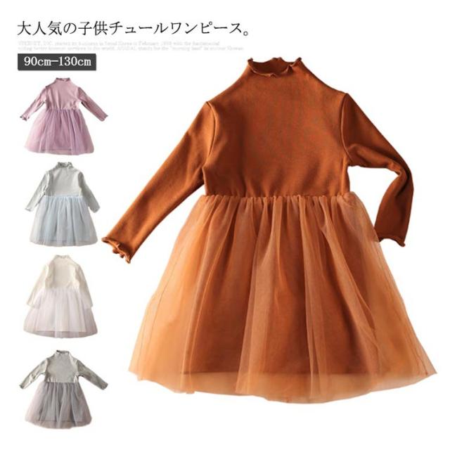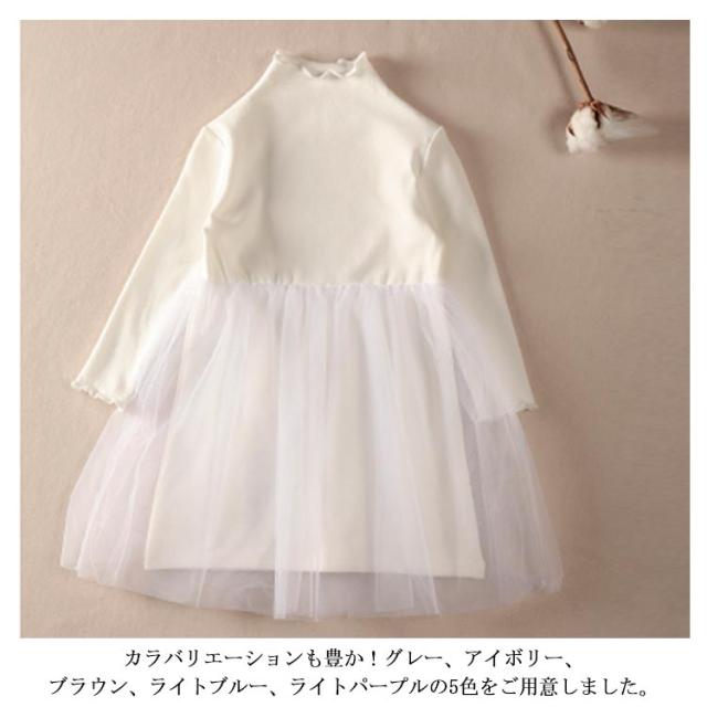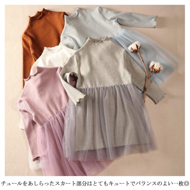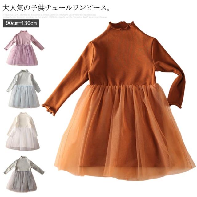 全5色 子供服 長袖 ワンピース チュール 子ども服 女の子 無地 春 秋 カジュアル カットソー ジュニア 送料無料 結婚式 お呼ばれ プチプラ 90cm 100cm 110cm 120cm 130cm
