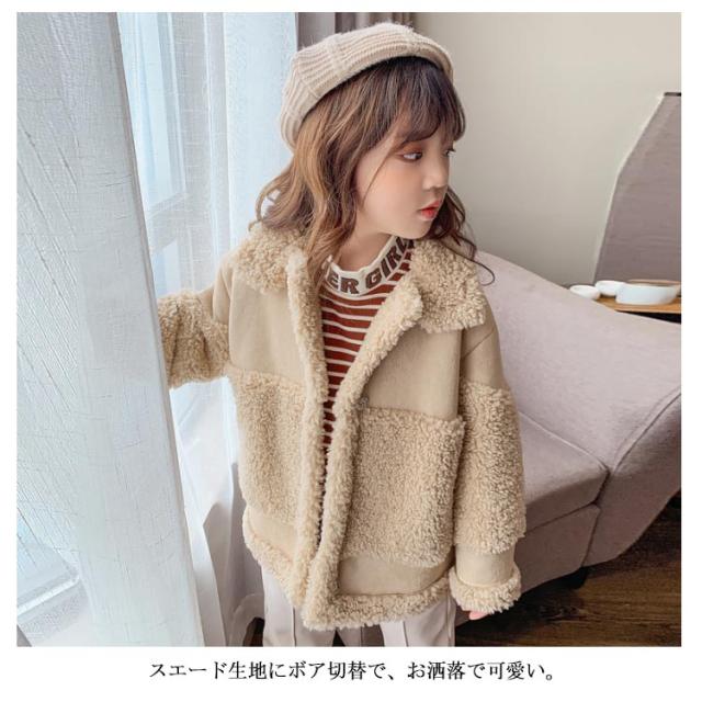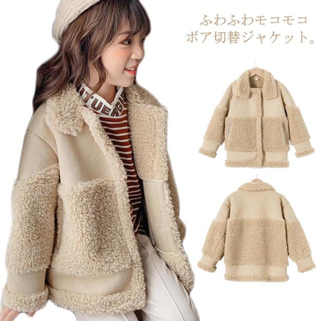 ボアジャケット 子供服 ボアコート 女の子 男の子 切替 もこもこ 保温 防寒 アウター ボア ブルゾン ジュニア ムートンジャケット フェイクムートン 秋 冬 人気 お洒落
