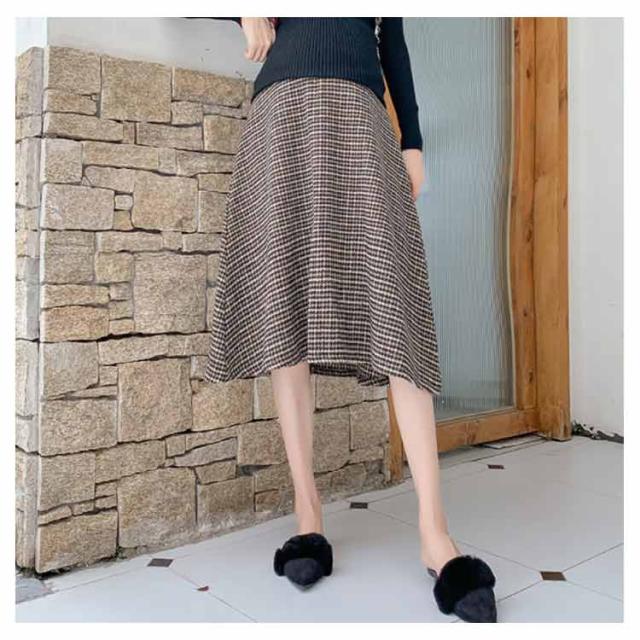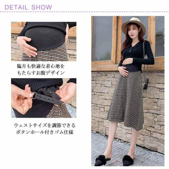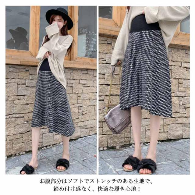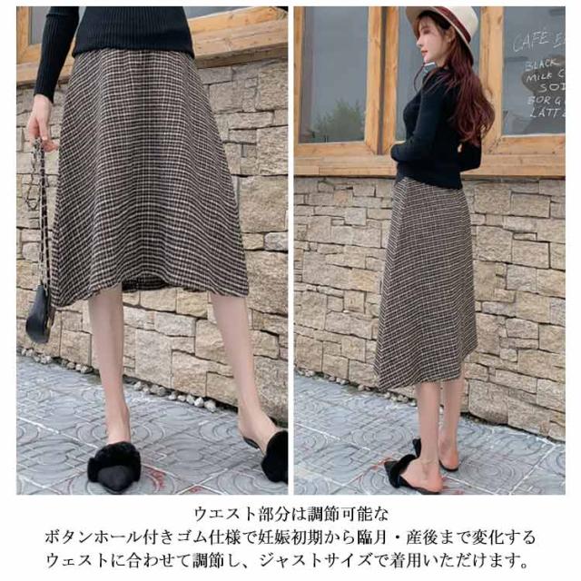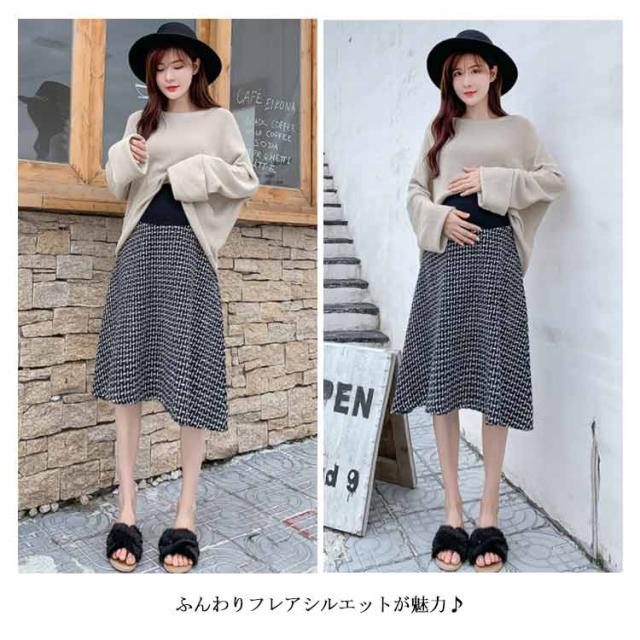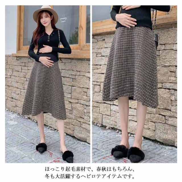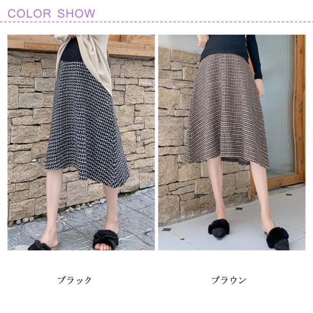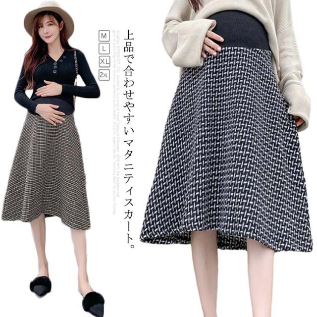 マタニティ スカート Aライン チェック柄 肉厚 フレアスカート 膝丈 ミモレ丈 千鳥柄 マタニティスカート マタニティウェア 妊娠服 ボトムス オシャレ 通勤 お出かけ 春秋 冬