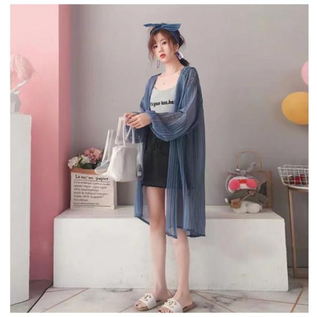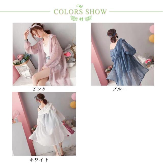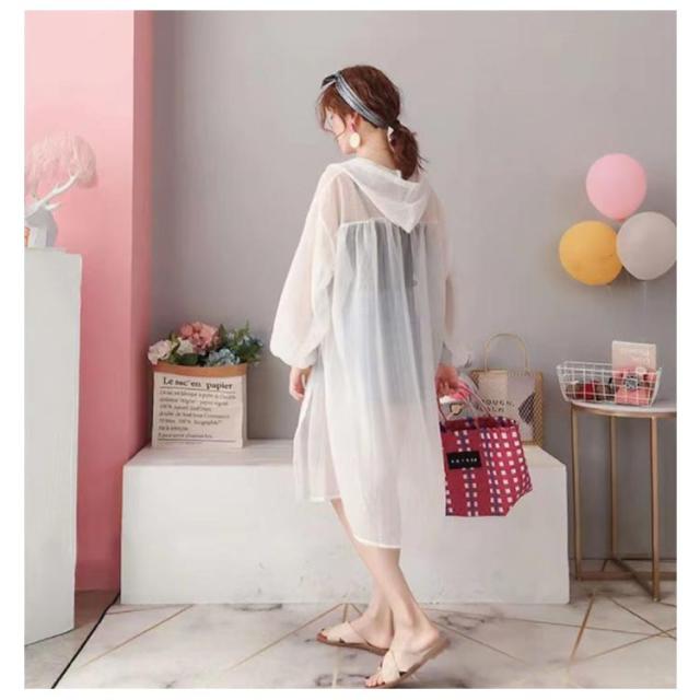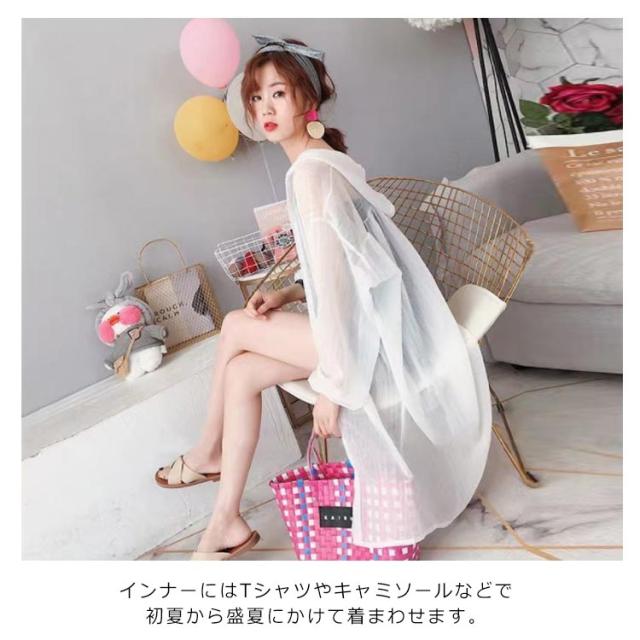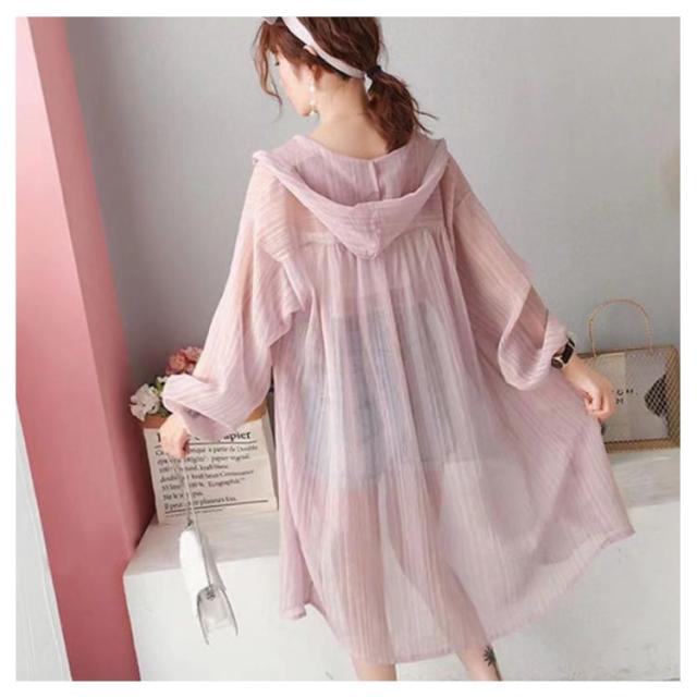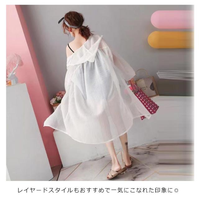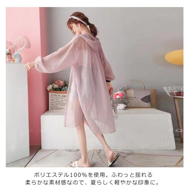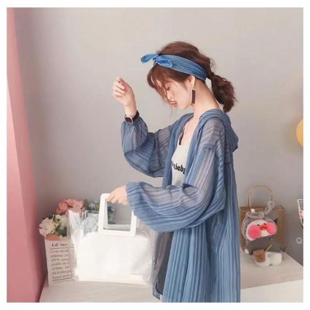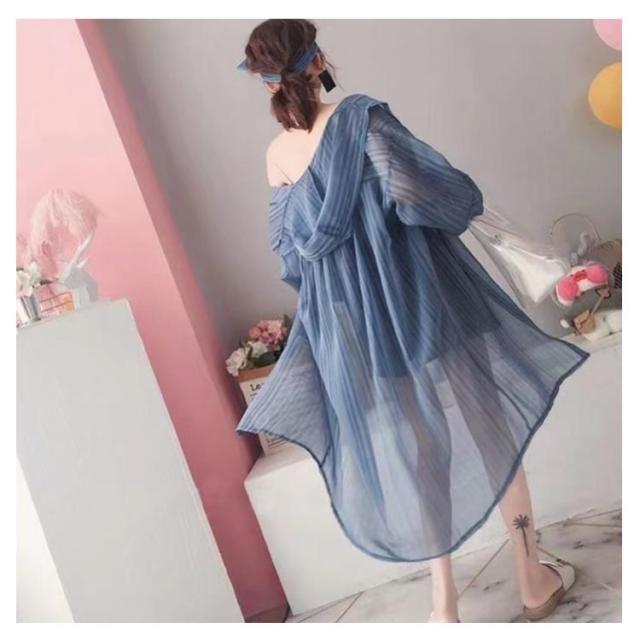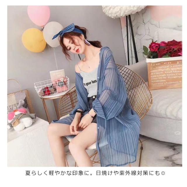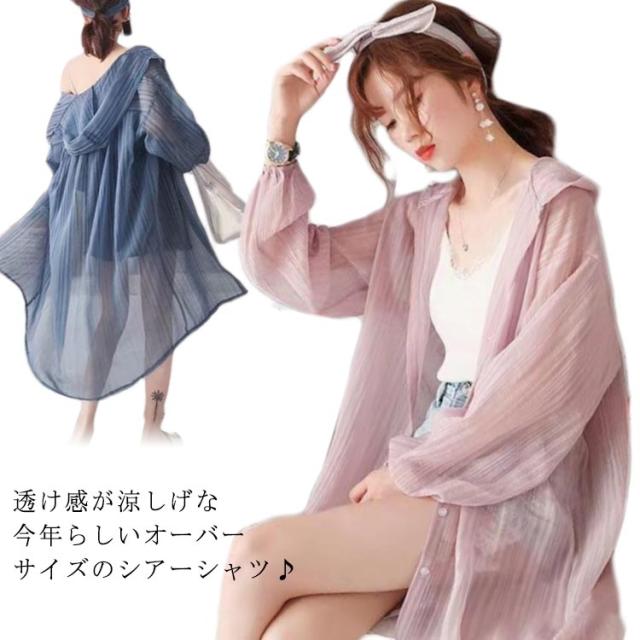 【送料無料】シアーシャツ ロング 透け感 シアー パーカー フード付き ストライプ柄 ブラウス 羽織り 袖ボリューム 前後差 抜け感 韓国風 コーデ 体型カバー レディース 大人 きれいめ 春 夏 秋 おしゃれ オーバーサイズ
