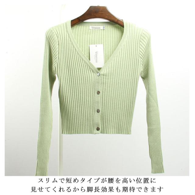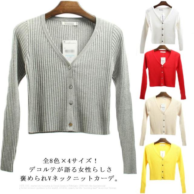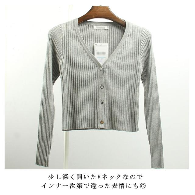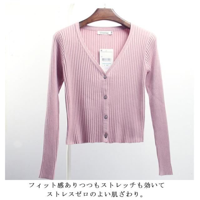 全8色×4サイズ!リブカーディガン 春 ニット Vネック ニットカーディガン カーディガン 長袖 リブ リブニット ショート丈 伸縮性 ストレッチ シンプル 無地 冷気対策 秋服 レディース