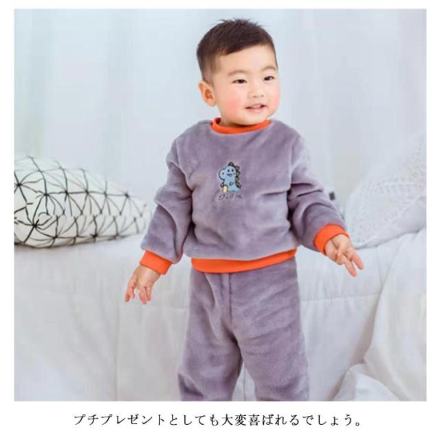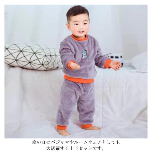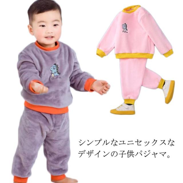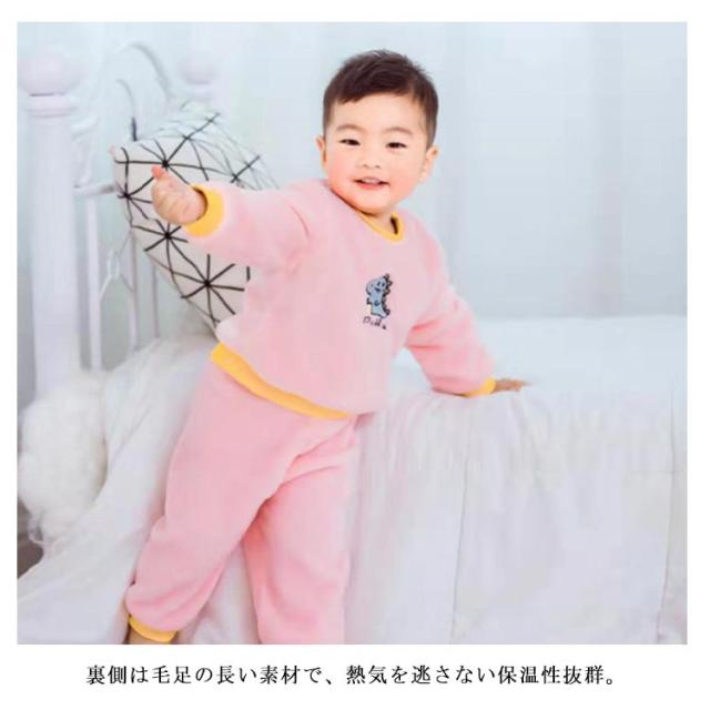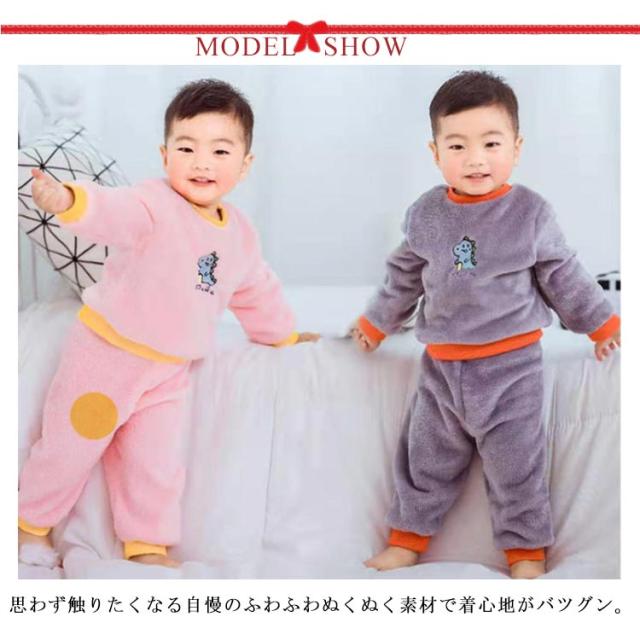 パジャマ 子ども服 上下セット ルームウェア 2点セット もこもこ 可愛い キャラクター 暖かい 秋冬 防寒 クルーネック トレーナー ロングパンツ ボアフリース プチプラ