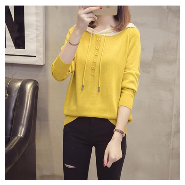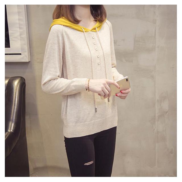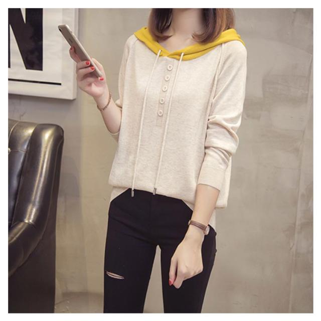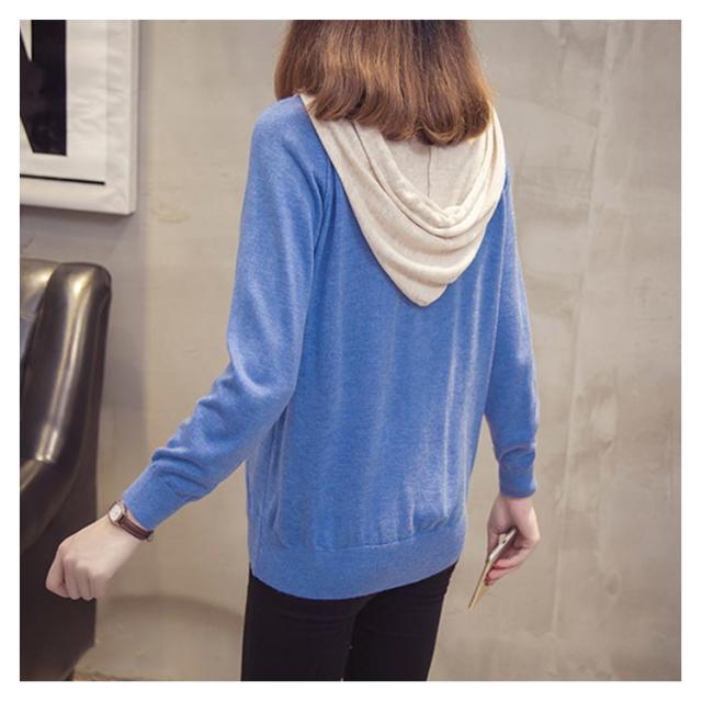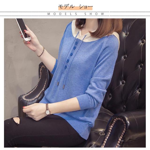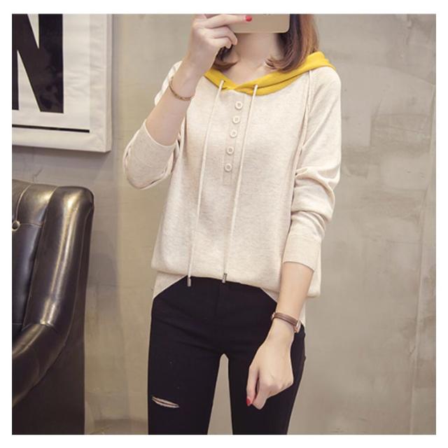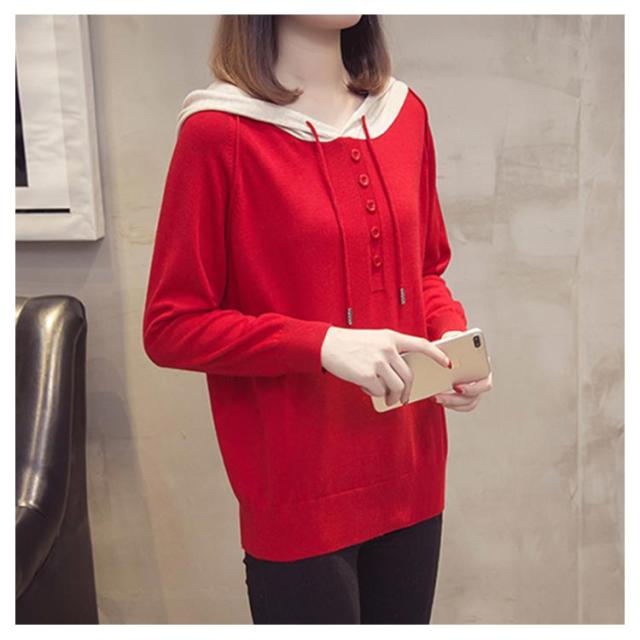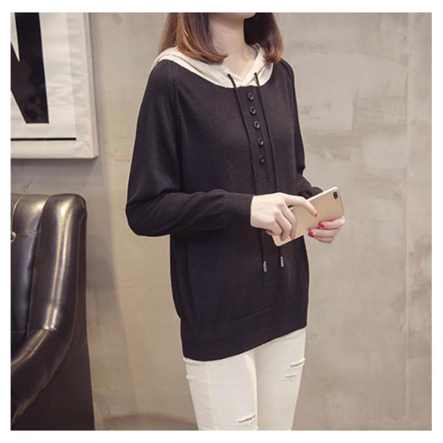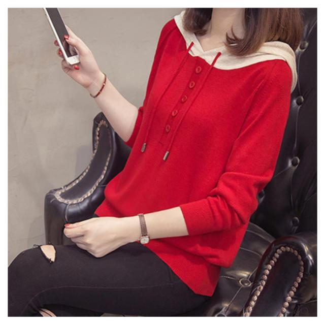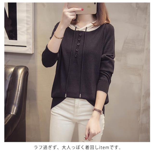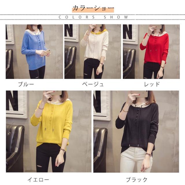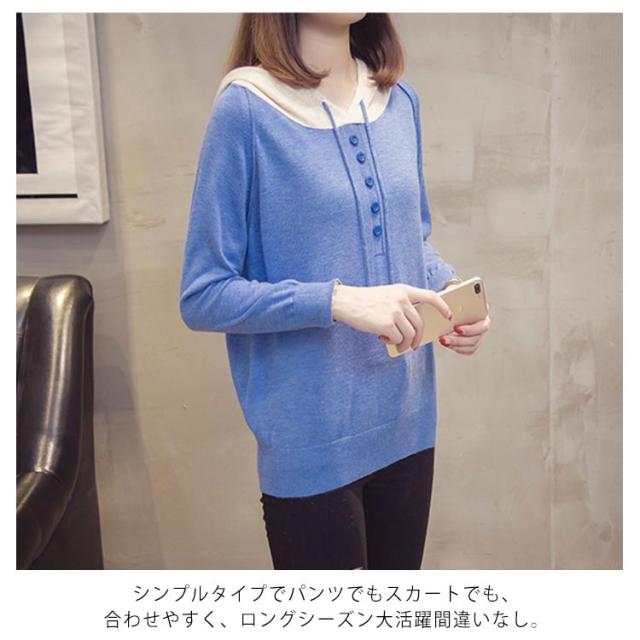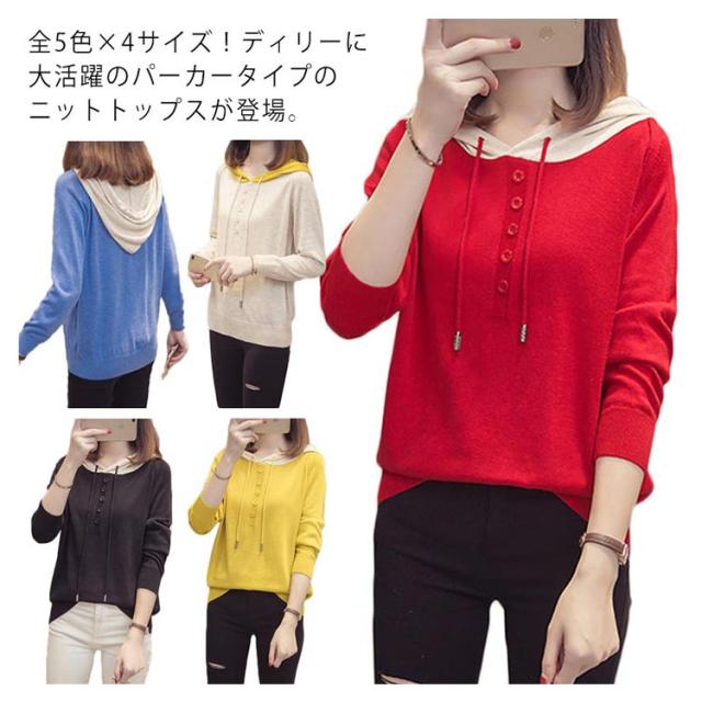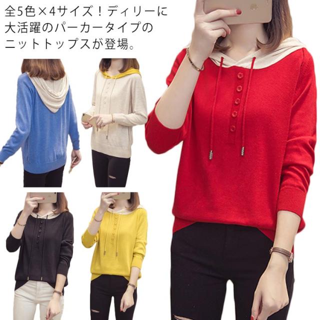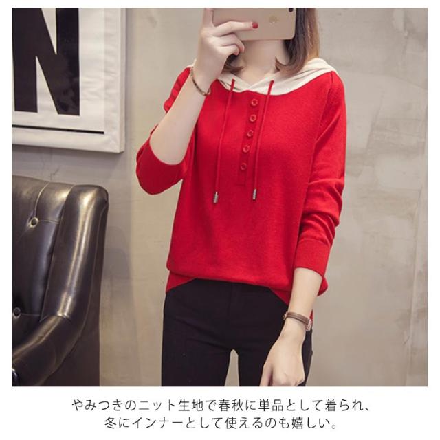 全5色×4サイズ!配色フード付きニットパーカー レディース ニットセーター ニットパーカー パーカー プルオーバーパーカー ニット トップス バイカラー カジュアル 通勤 通学 おしゃれ 女性 春 秋