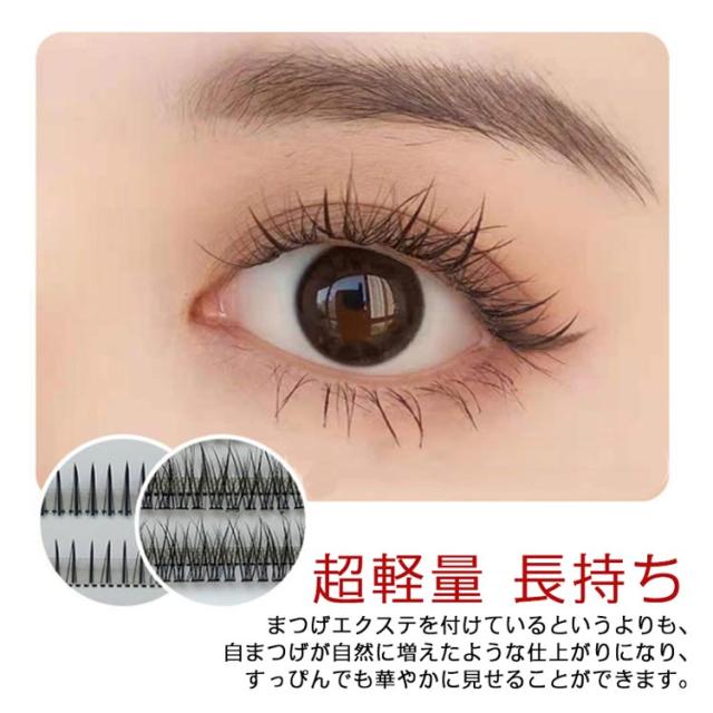 | まつげエクステを付けているというよりも、自まつげが自然に増えたような仕上がりになり、すっぴんでも華やかに見せることができます。 束エクステなのに羽のように軽く柔らかい付け心地です。 | |