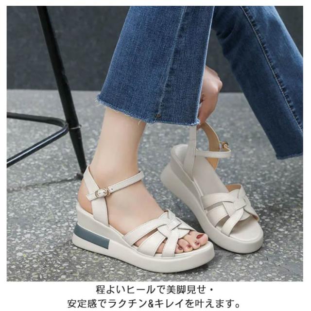 美脚 サンダル レディース つっかけ 厚底 サボ サンダル ヒール ミュール ウエッジソール 靴 ウェッジソール サンダル 歩きやすい 疲れない 痛くない カジュアル コンフォートサンダル ストラップ 美脚効果 黒 ベージュ カジュアル 仕事 OL 美脚 シューズ 通勤