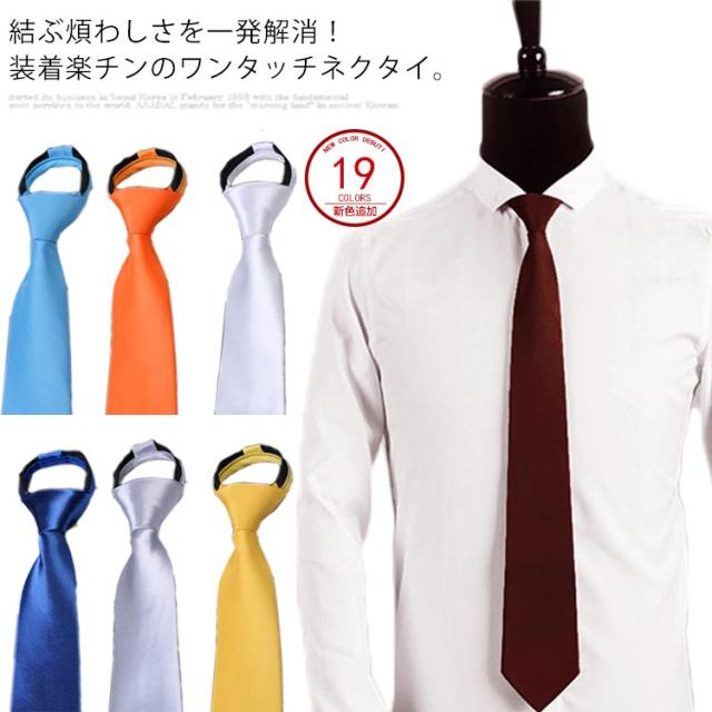 ネクタイ ワンタッチ ワンタッチネクタイ メンズ 無地 カラーネクタイ クイックネクタイ フォーマル カジュアル 簡単ネクタイ スーツ ビジネス ユニフォーム