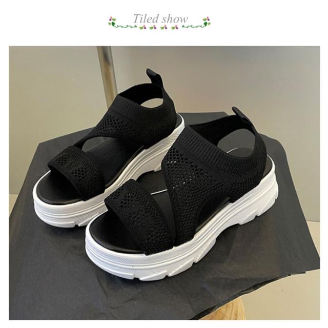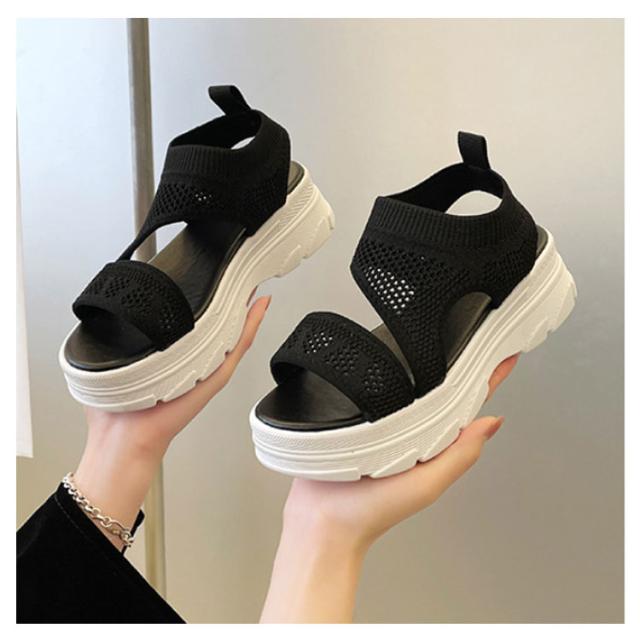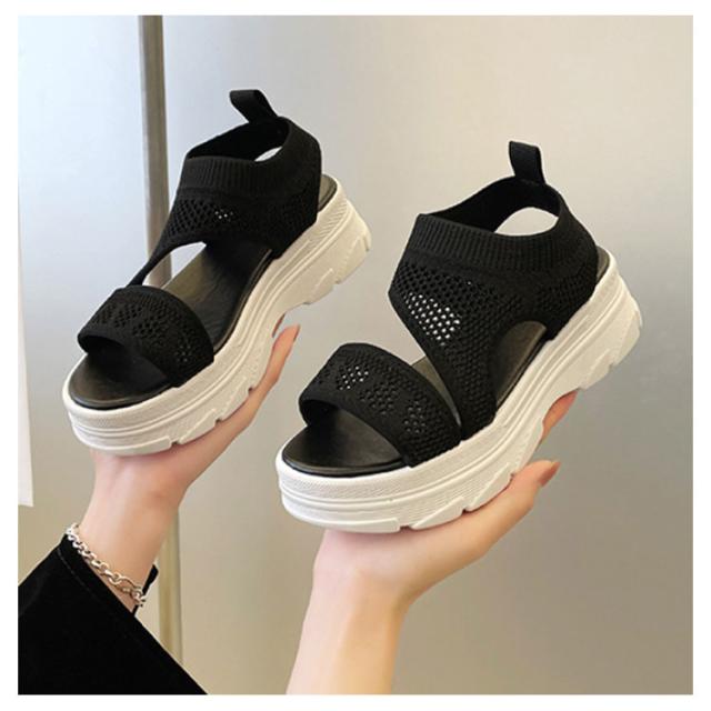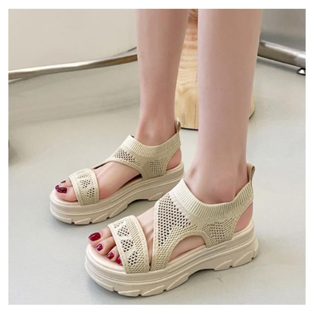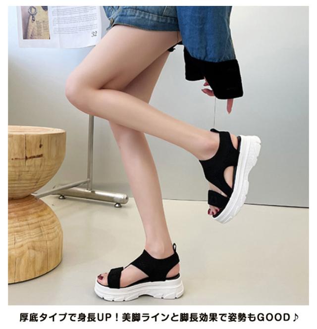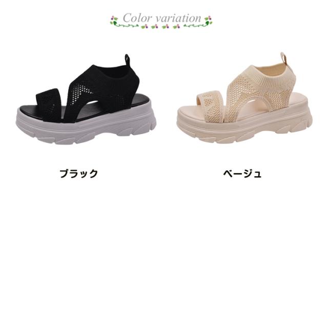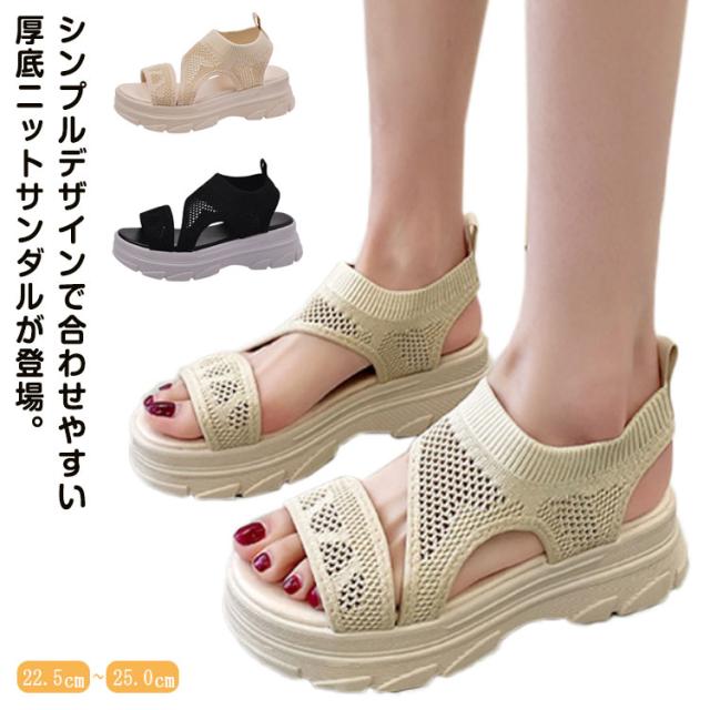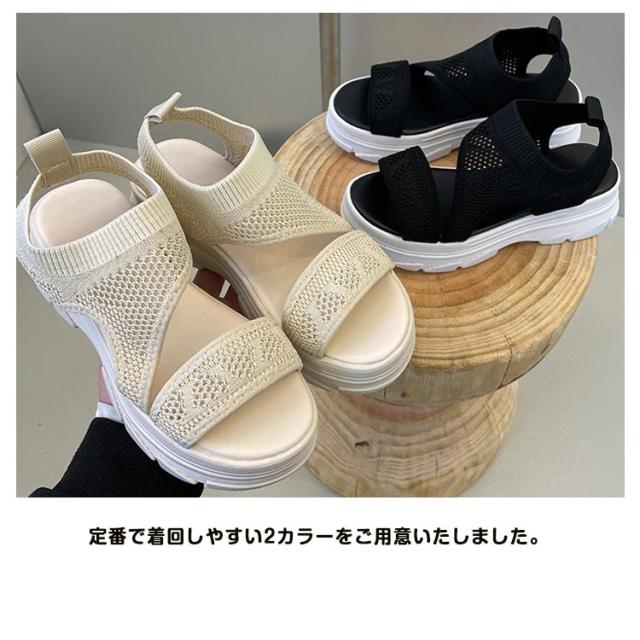 サンダル レディース ニット シューズ 厚底サンダル 靴 スポーツ サンダル メッシュ オープントゥ スポサン カジュアル 靴 韓国風 歩きやすい シンプル 大人 可愛い 美脚 通勤 通学 旅行 涼しい 快適 通気性
