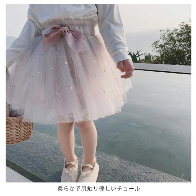 キッズ チュールスカート チュチュ ふんわり ボリューム ベビー 赤ちゃん 幼児 スカート ボトムス リボン 星 フレア 発表会 衣装 ダンス 誕生日 プレゼント 寝相アート 80cm 90cm 100cm 110cm 120cm 130cm