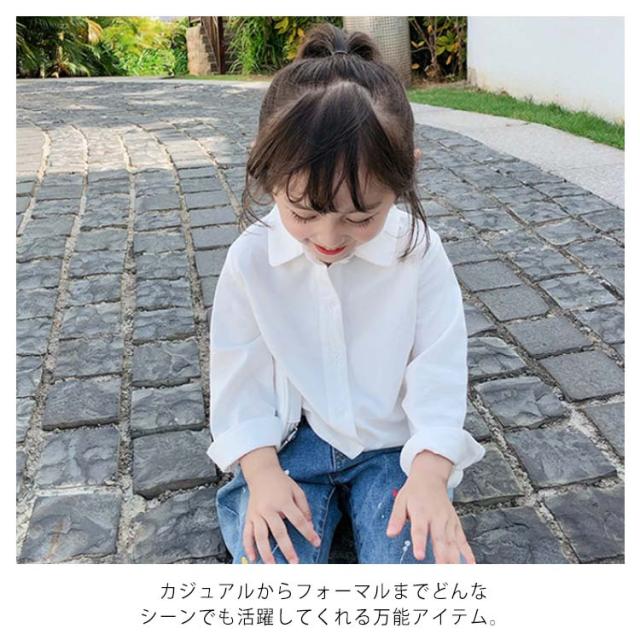 シャツ 子供服 シャツブラウス 女の子 キッズ 長袖 無地 コットン シンプル フォーマルシャツ Yシャツ ワイシャツ カジュアル 入学式 入園式 卒業式 90cm 100cm 110cm 120cm 130cm 140cm