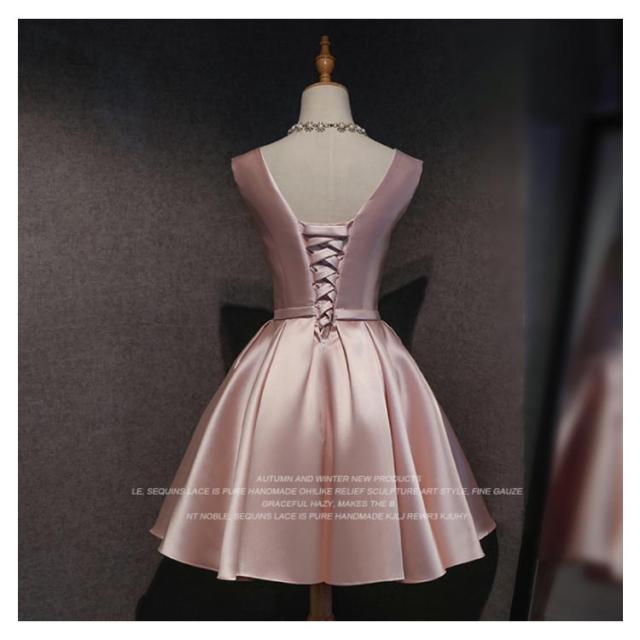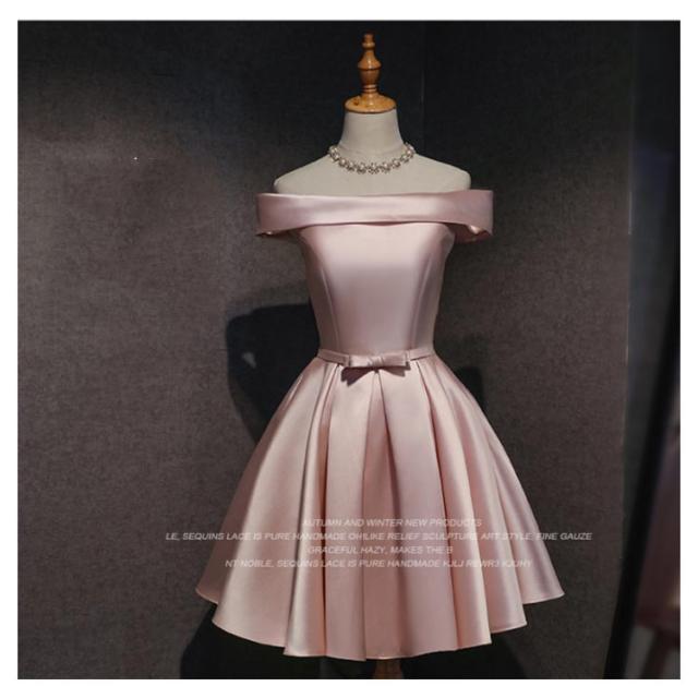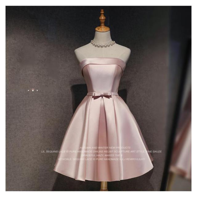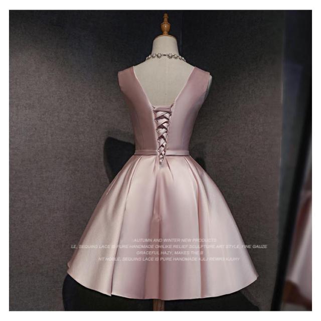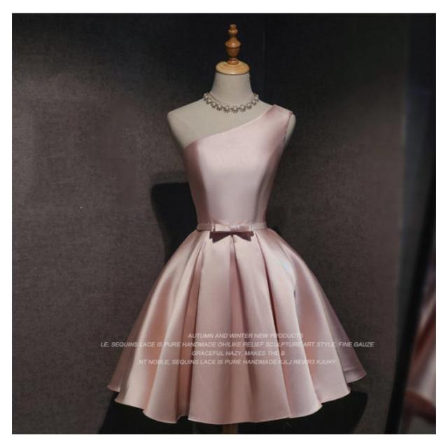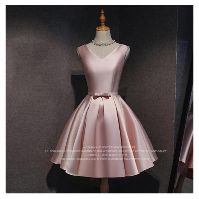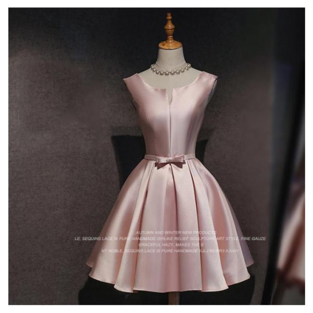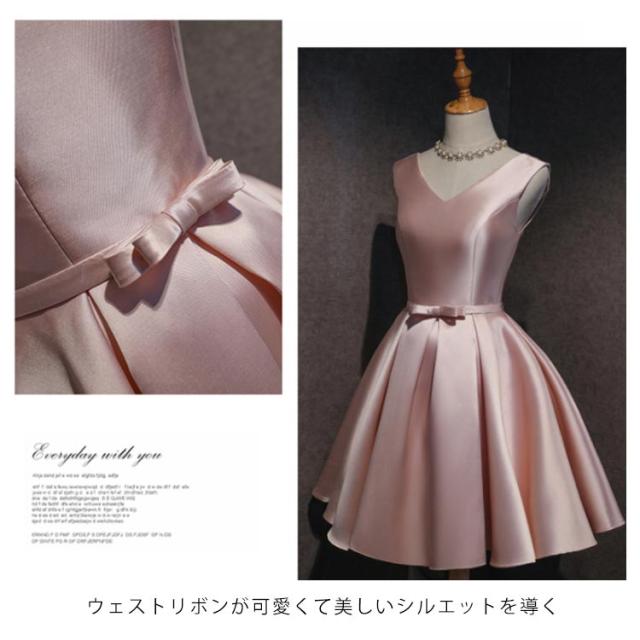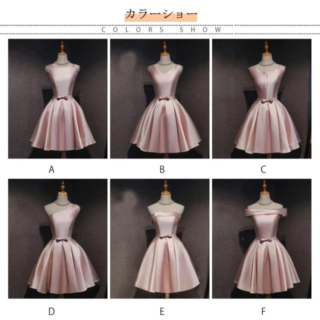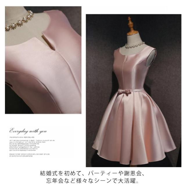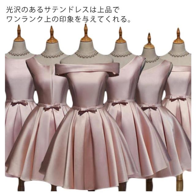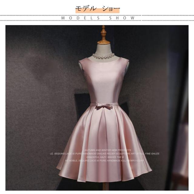 サテンドレス 結婚式 ドレス ショート ブライズメイドドレス フォーマルドレス お呼ばれ 結婚式 ウエディング ゲスト 招待 謝恩会 ふんわり Aライン リボン きいサイズ 花嫁 ドレス 結婚式 二次会 披露宴