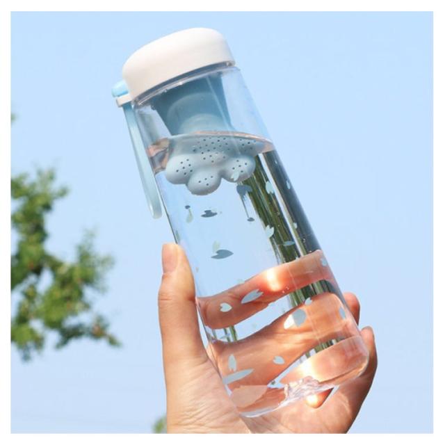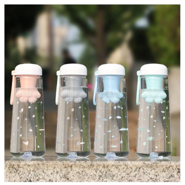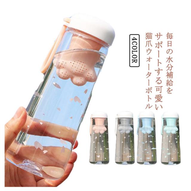 【送料無料】ウォーターボトル かわいい ボトル 洗いやすい かわいい ジム 大容量 猫爪 水筒 持ち運び 軽量 フレーバーウォーター 直飲み かわいい 持ち手 クリアボトル スポーツ 550ml オフィス アウトドア 水 お茶 仕事 カラフル マグボトル
