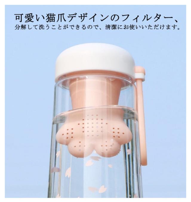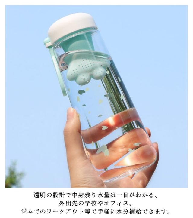 | 毎日の水分補給をサポートする可愛い猫爪ウォーターボトル フタには携帯性に優れたストラップ付きで手にフィットして持ちやすいです。 可愛い猫爪デザインのフィルター、分解して洗うことができるので、清潔にお使いいただけます。 飲み心地の良いサイズの開口部。ウォーターサーバーなどからも水が入れやすく洗いやすい設計です。 透明の設計で中身残り水量は一目がわかる、外出先の学校やオフィス、ジムでのワークアウト等で手軽に水分補給できます。 | |