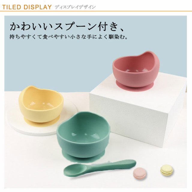 【送料無料】ベビー食器セット 洗いやすい スプーン付き シリコンボウル シリコン 吸盤付き ひっくり返らない 離乳食 食べこぼし 子供 赤ちゃん おしゃれ 安定感 キッズ 幼児 お茶碗 食洗機 電子レンジ可能 出産祝い ギフト プレゼント