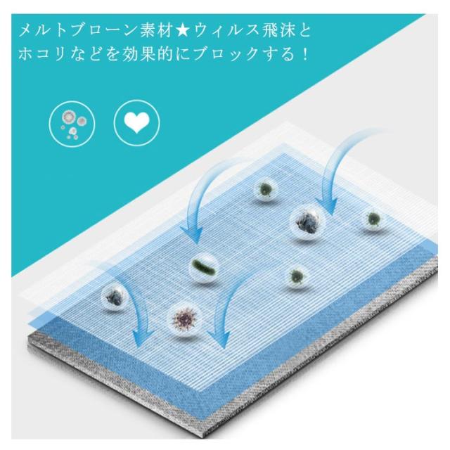 | 素材 | 内層/外層:不織布 フィルター層:メルトブローン(melt-blown fabric) |