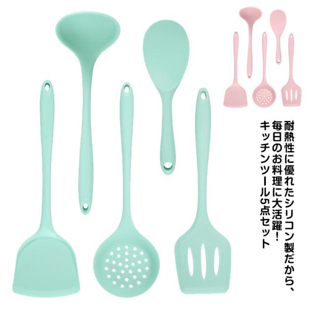 台所用品 キッチン用品 フライ返し スプーン キッチンツールセット シリコン製 耐熱シリコン 5点セット クッキング用品 調理器具ツール おたま 炒めへら ヘラ 引っ越し しゃもじ キッチン用品 セット 一人暮らし 【送料無料】キッチンツール